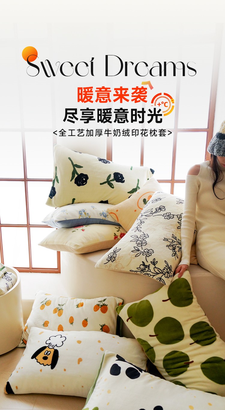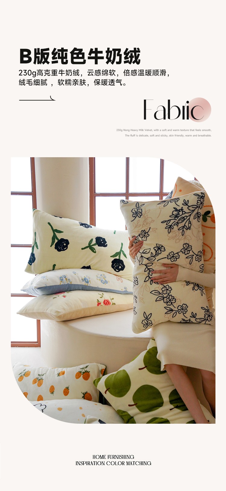 (总)时光里 2023新款230g半消光印花牛奶绒单品枕套
