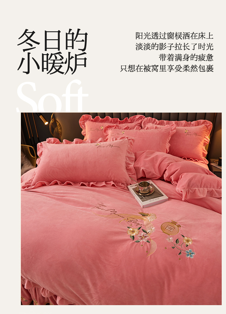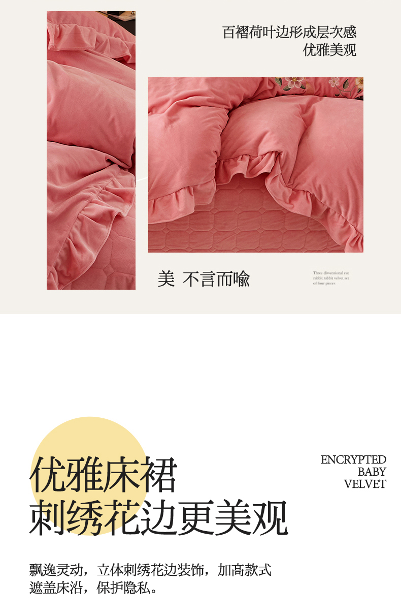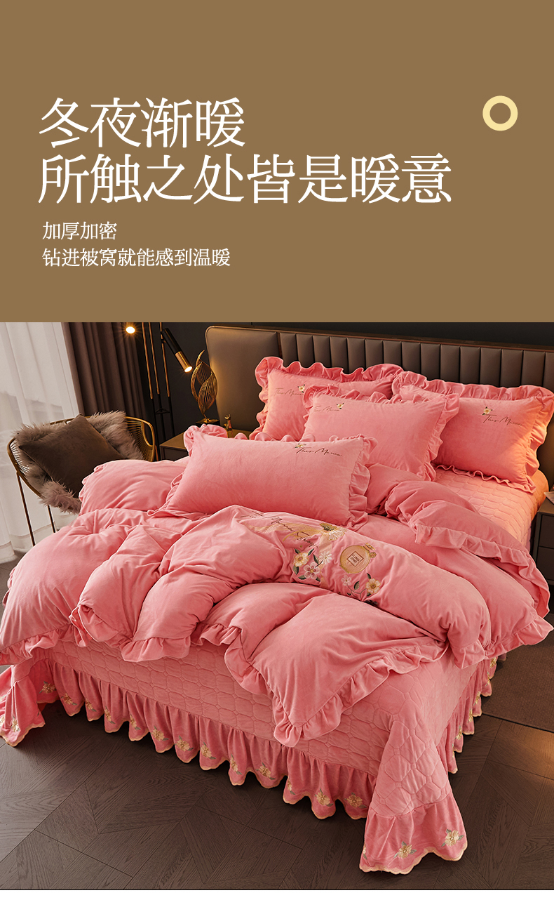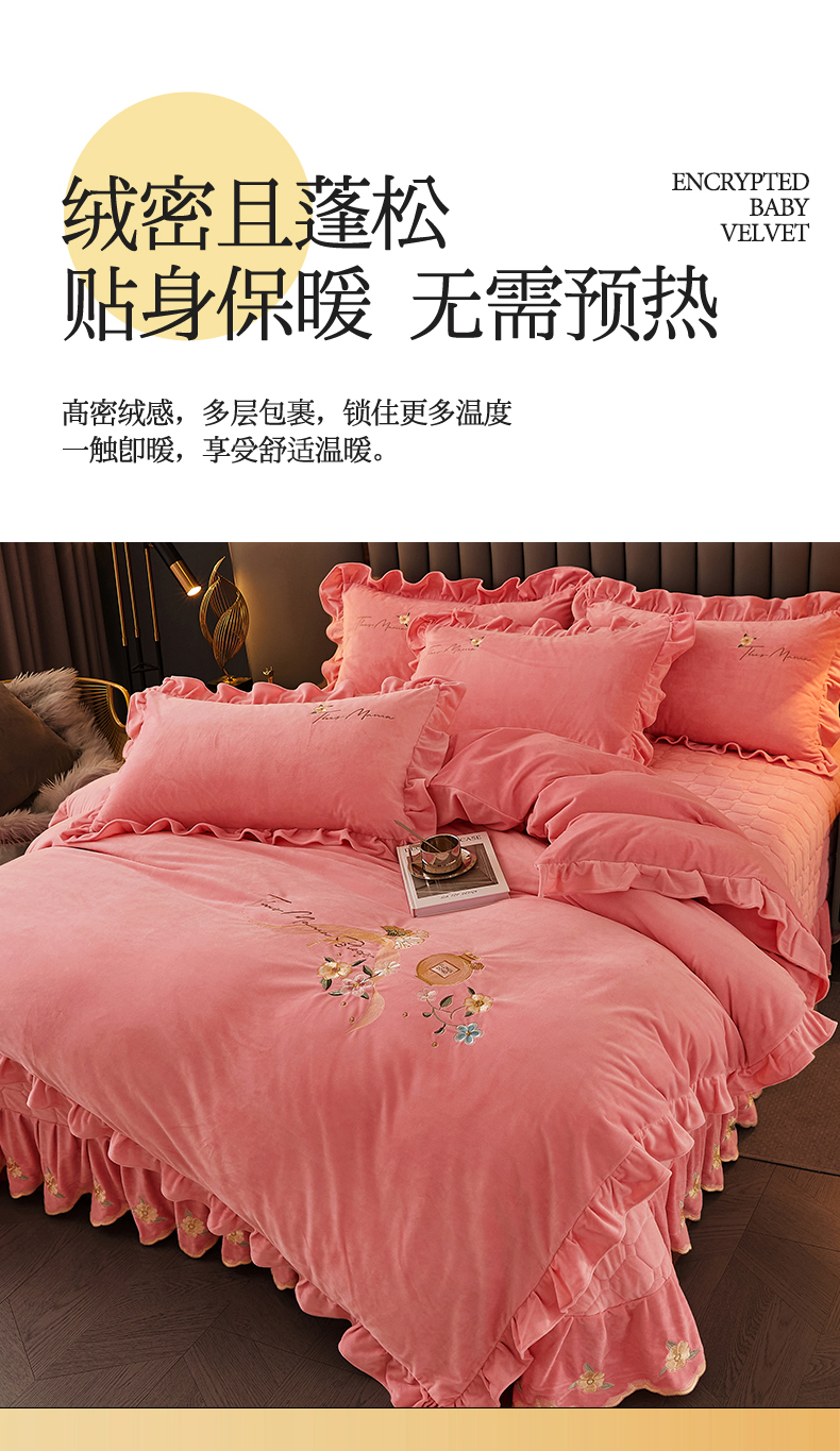当前位置: 91家纺网 > 商品网购 > 床品套件 > 四件套 > 宝宝绒四件套 > 恒爱家纺 2023新款温暖舒适加密宝宝绒床盖四件套-邂逅系列 欧韵粉