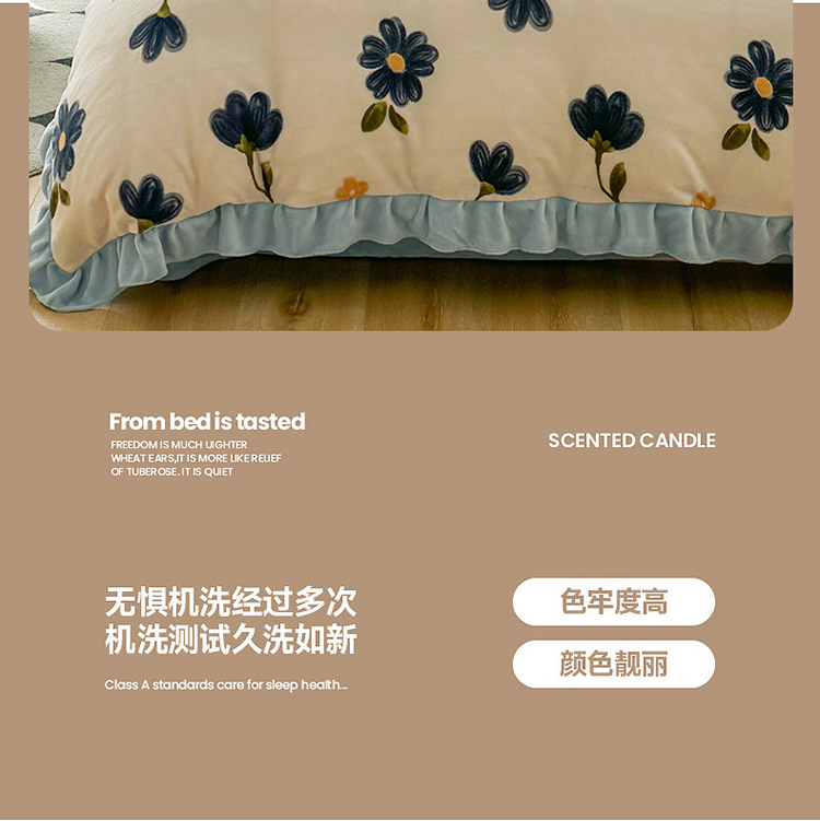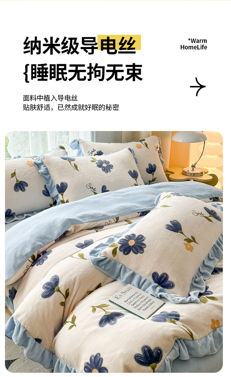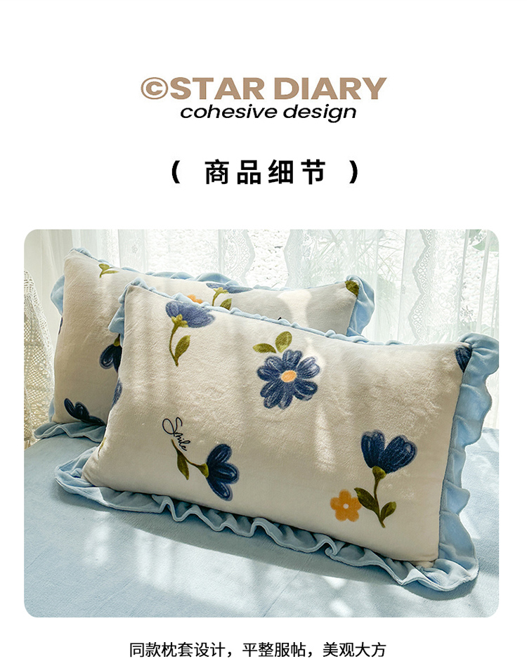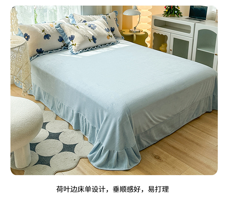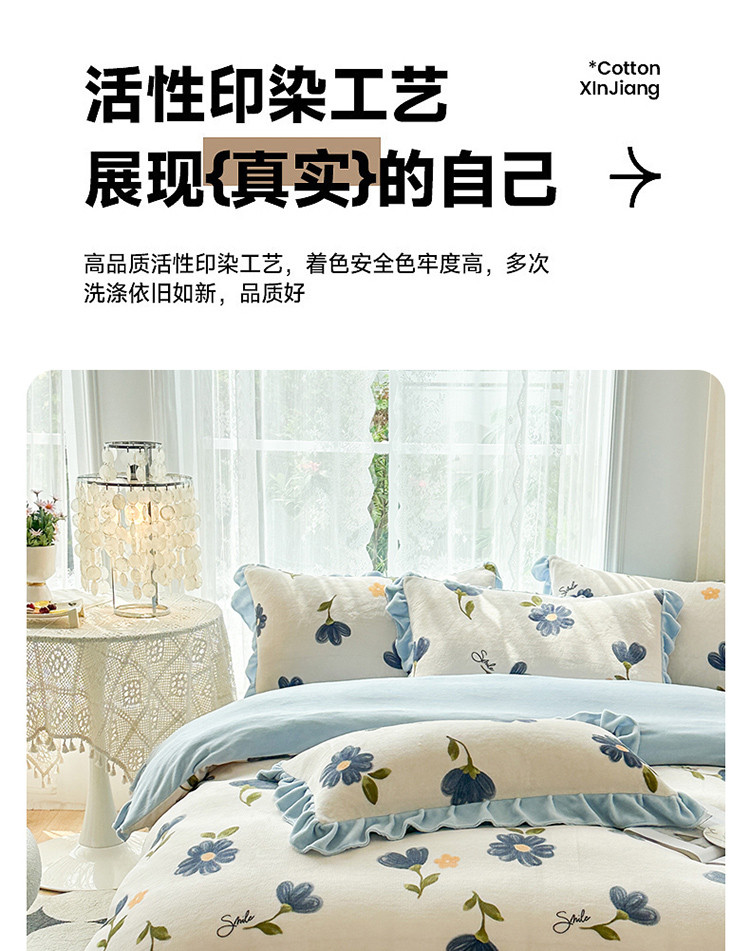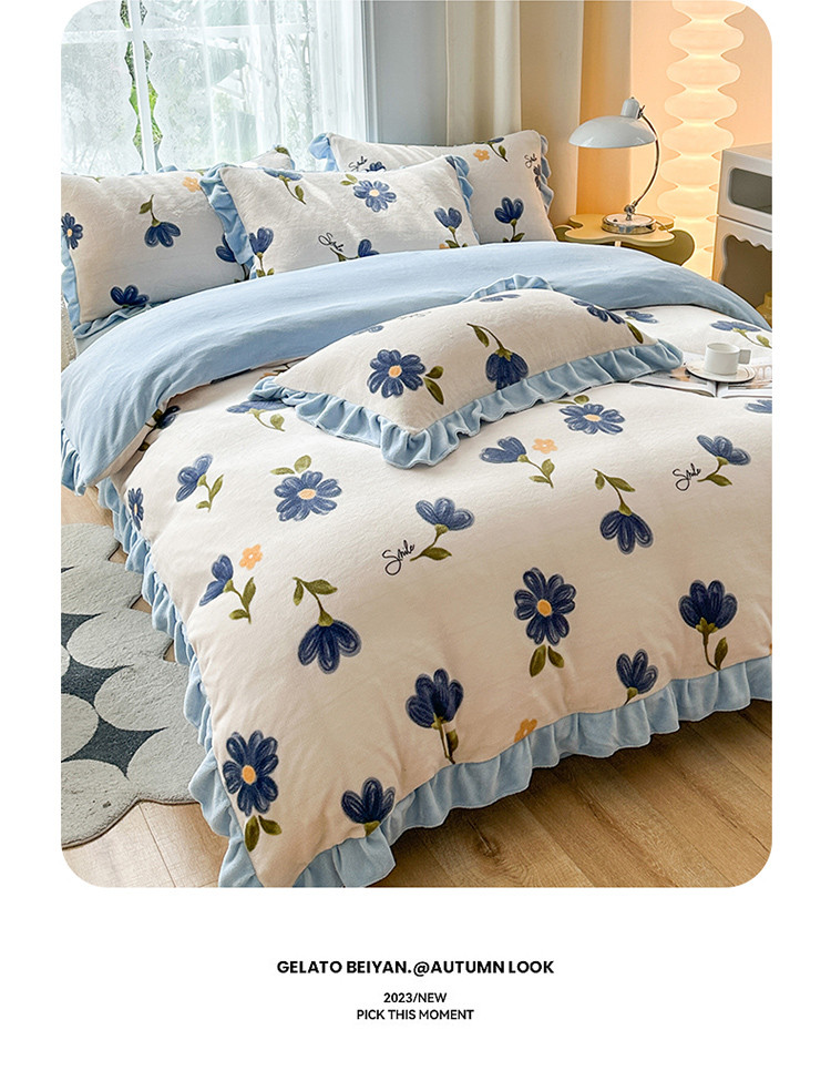 当前位置: 91家纺网 > 商品网购 > 床品套件 > 四件套 > 牛奶绒四件套 > 小主驾到 2023新款高克重韩版牛奶绒花边四件套蓝莲花