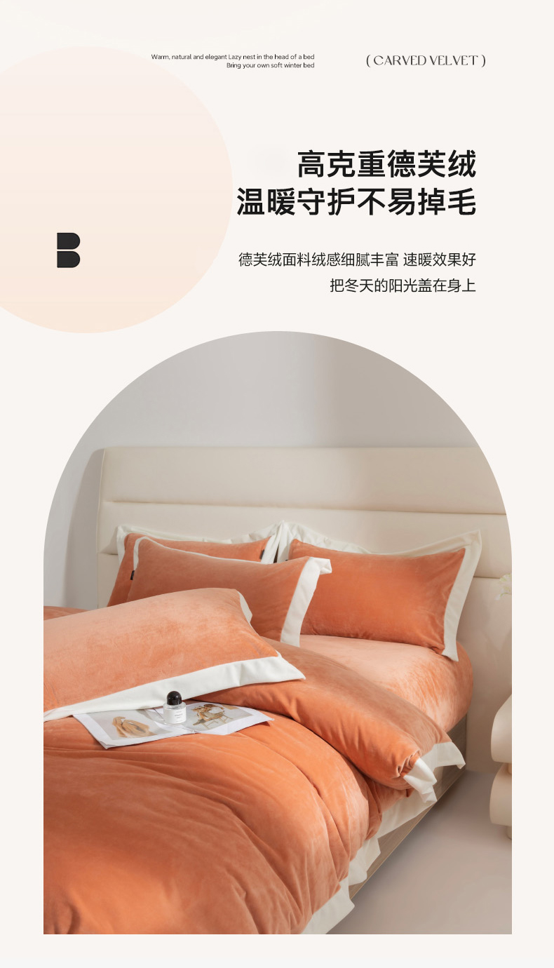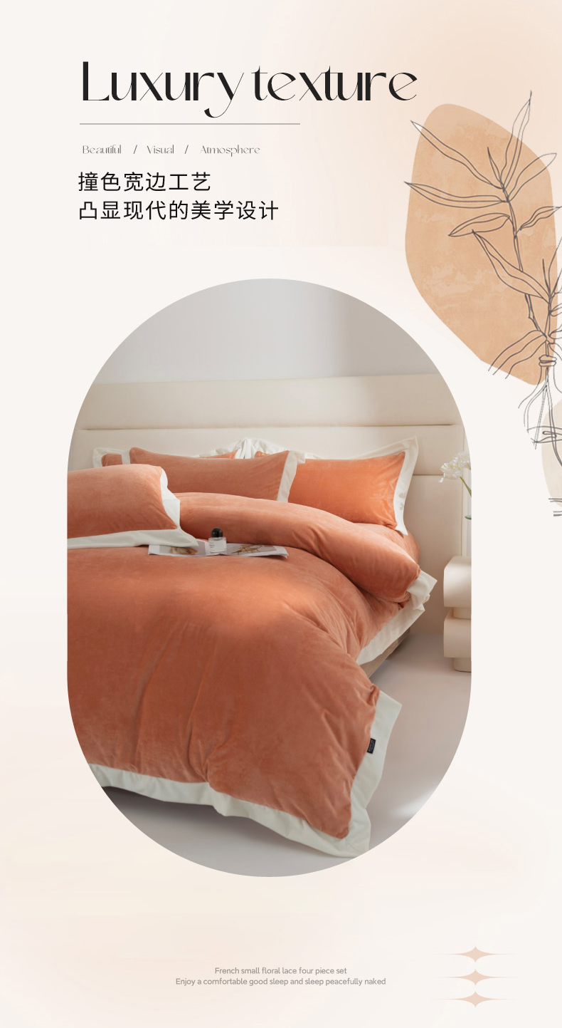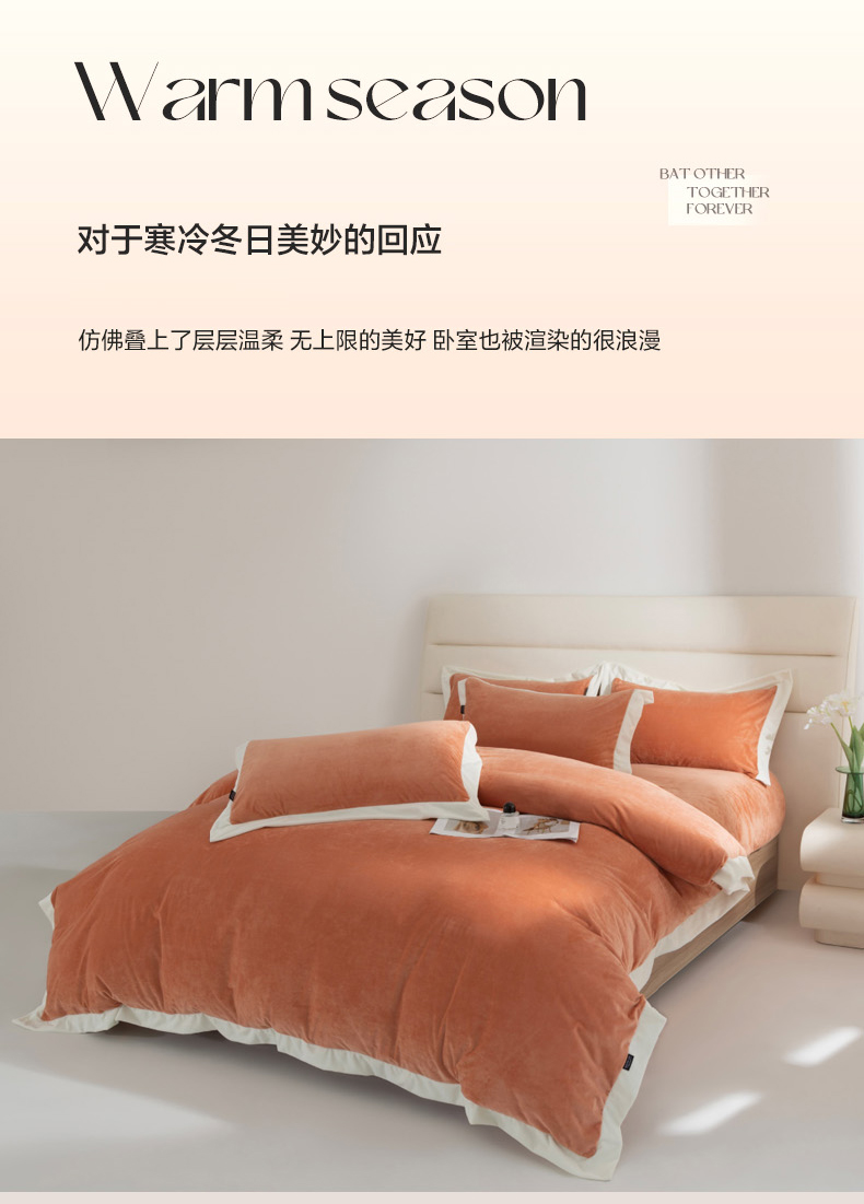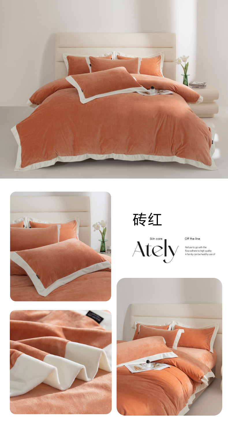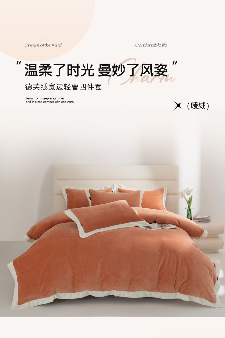 当前位置: 91家纺网 > 商品网购 > 床品套件 > 四件套 > 牛奶绒四件套 > 万盛家纺 2025秋冬新品德芙绒宽边轻奢四件套 砖红