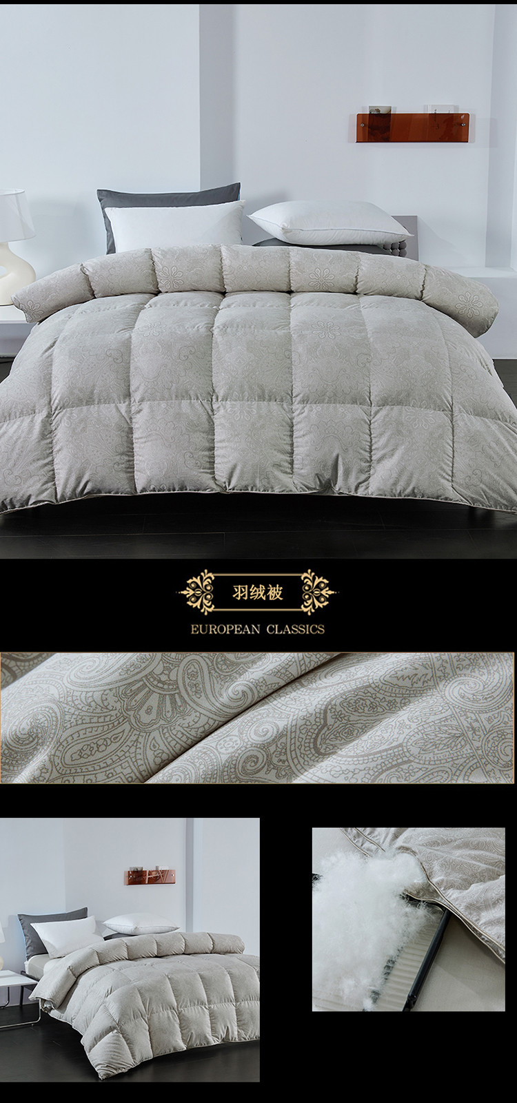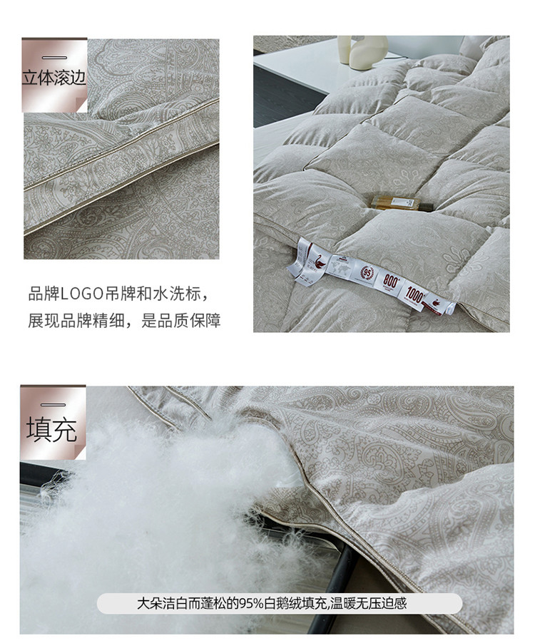 • 91家纺网 家纺一手货源 找家纺 御眠纺高端提花静音95白鹅绒98白鹅大朵白鹅绒被子 佩里斯浅卡其