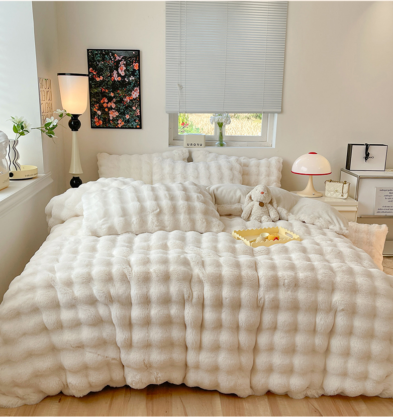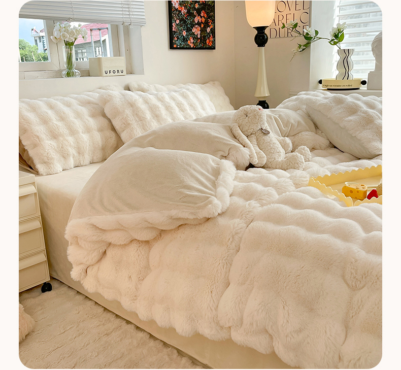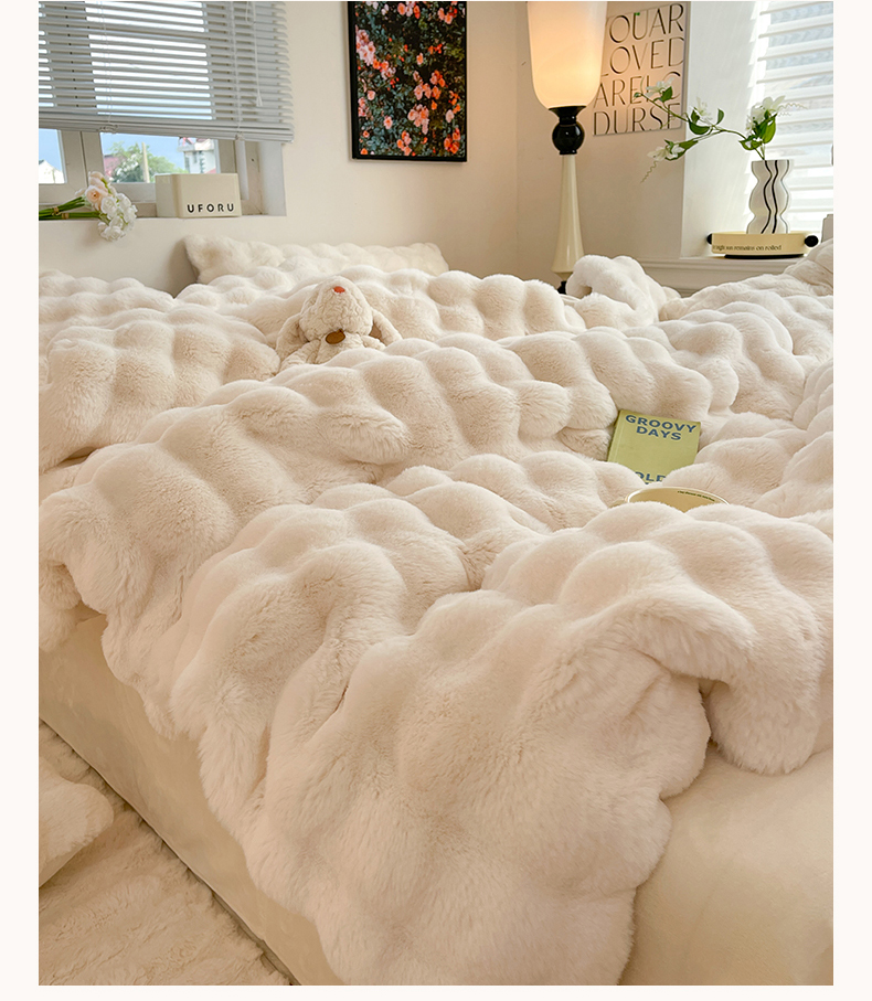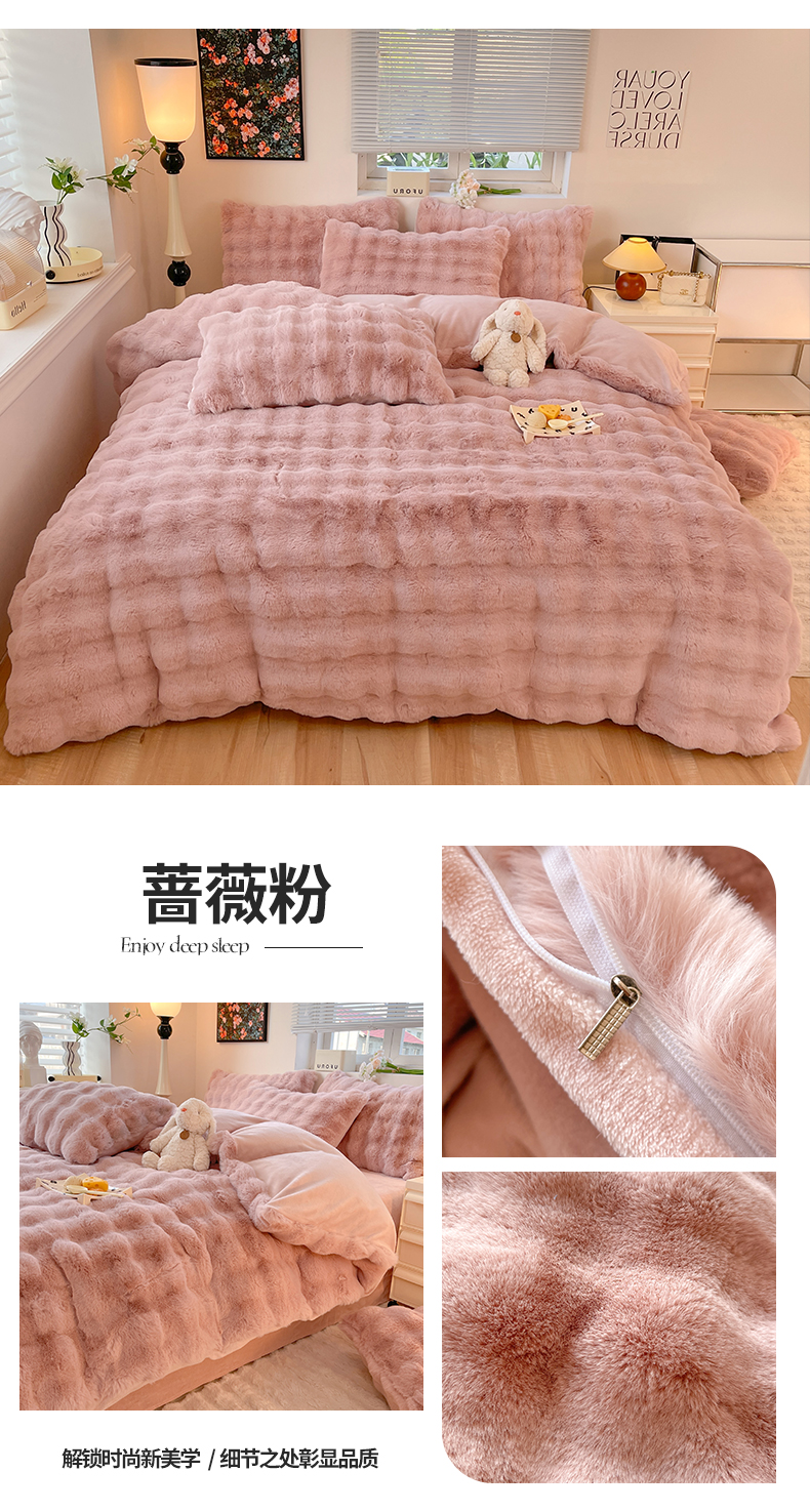 当前位置: 91家纺网 > 商品网购 > 床品套件 > 四件套 > 牛奶绒四件套 > 席之家 2024新款高克重托卡斯仿皮草大泡泡兔兔绒牛奶绒四件套柔粉