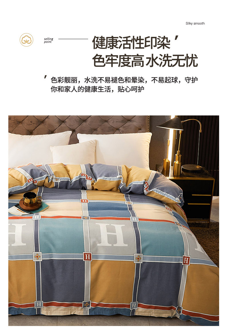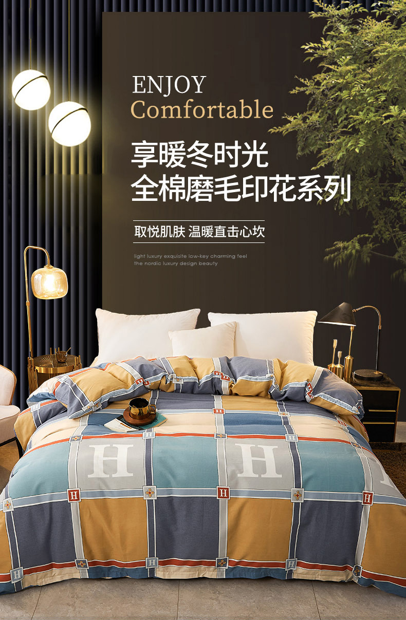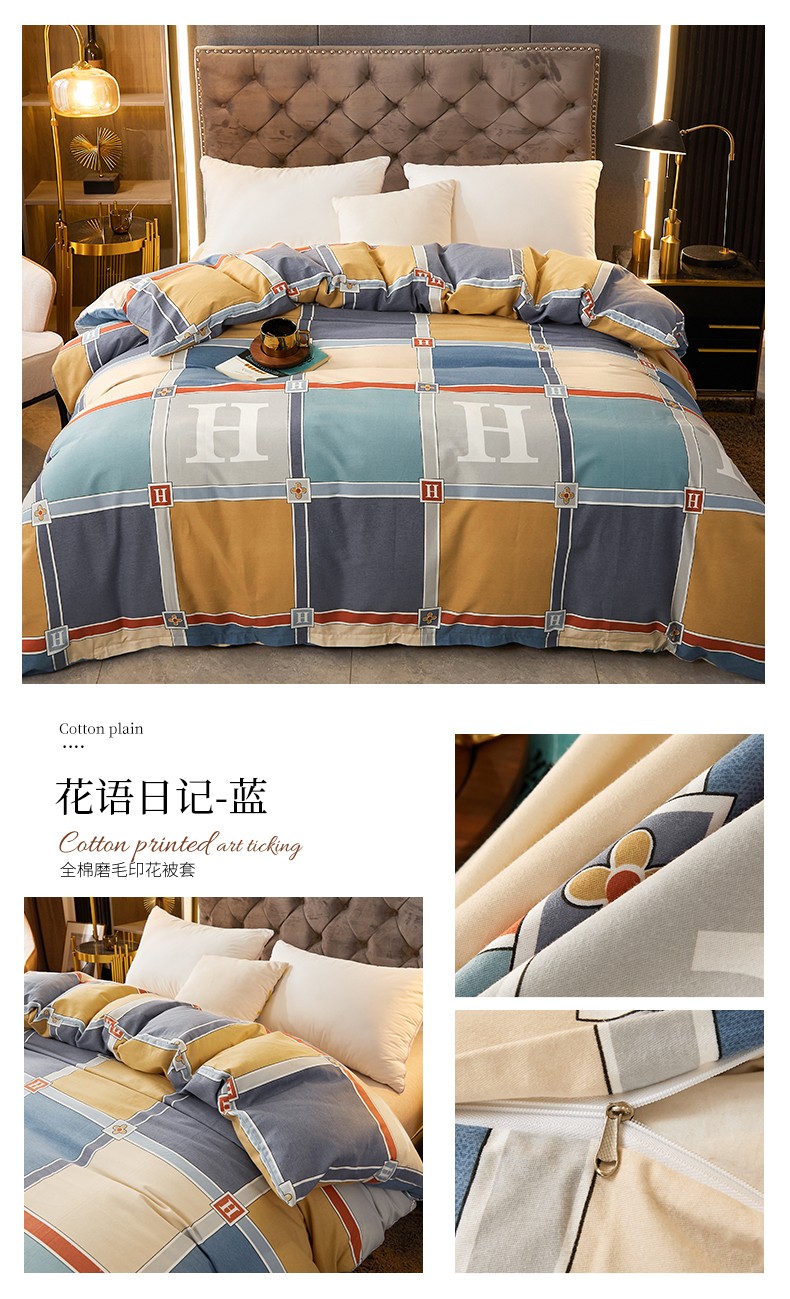• 91家纺网 家纺一手货源 找家纺 伊而梦 2023新款全棉磨毛印花四件套系列单品被套 花语日记-蓝