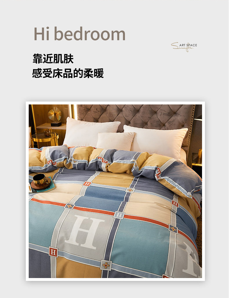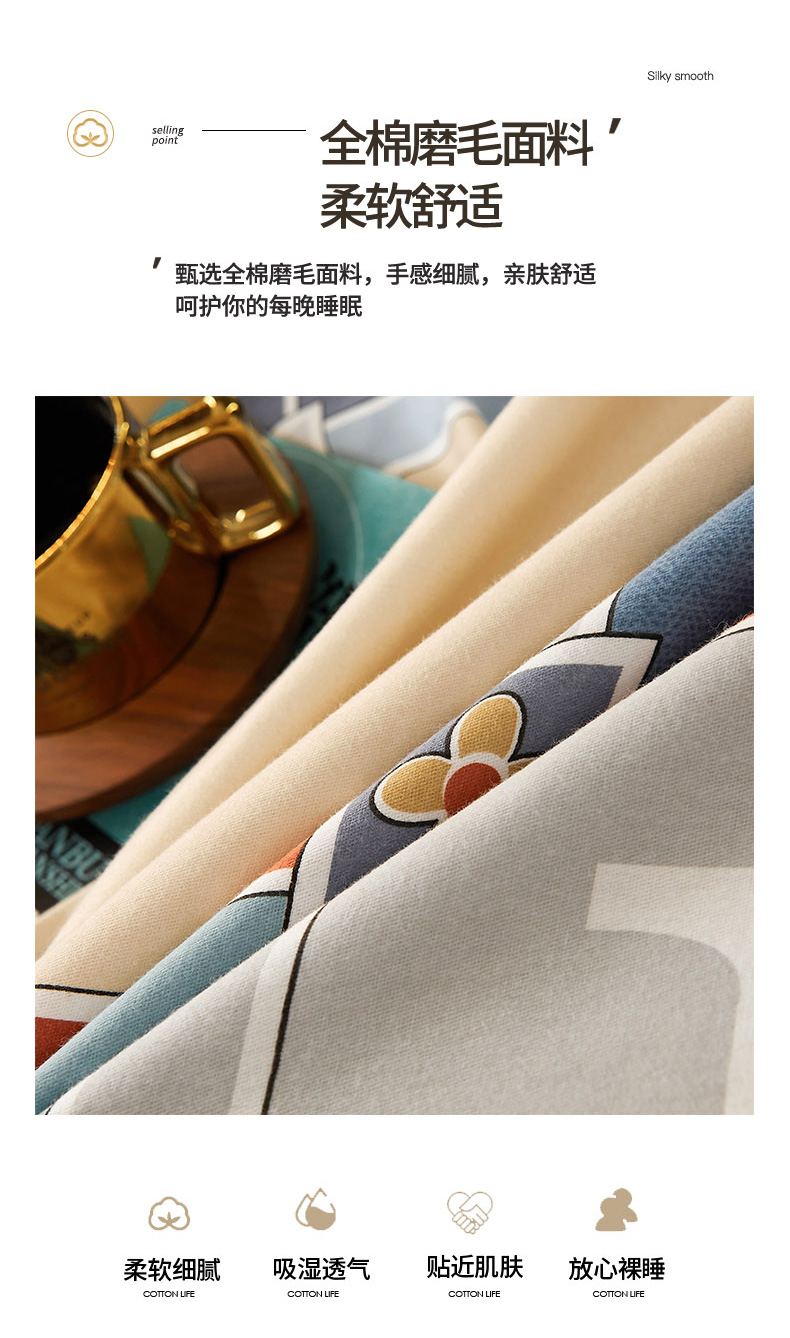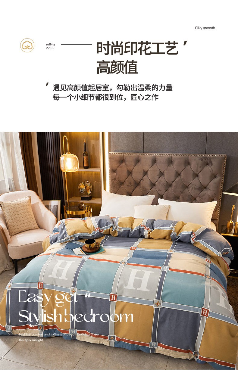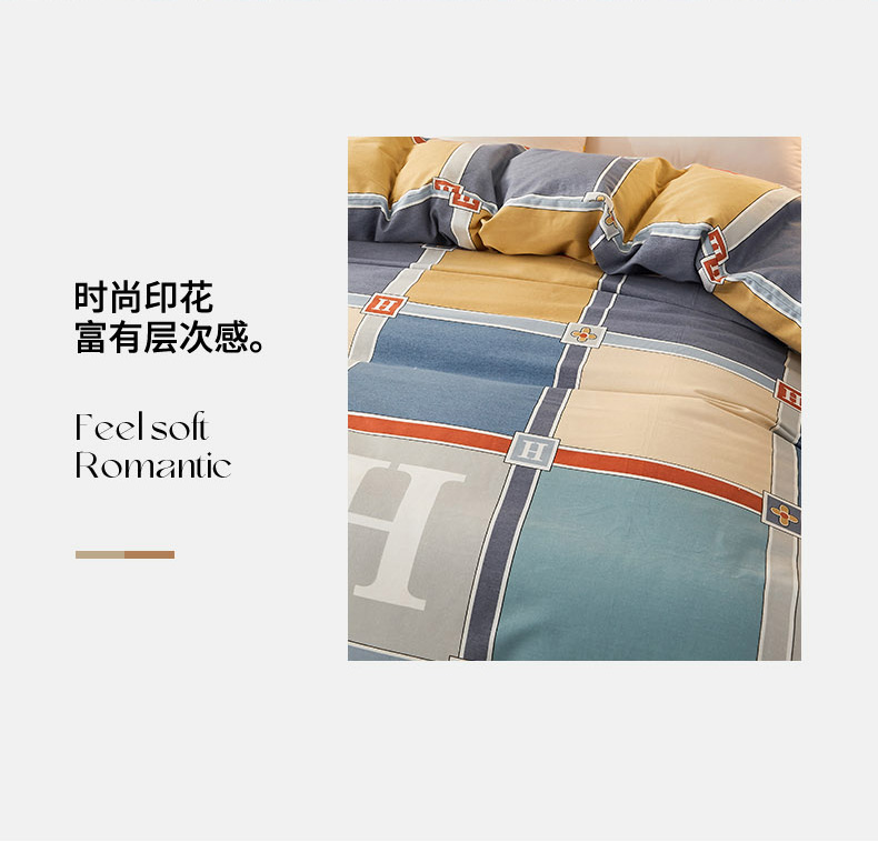 • 91家纺网 家纺一手货源 找家纺 伊而梦 2023新款全棉磨毛印花四件套系列单品被套 花语日记-蓝