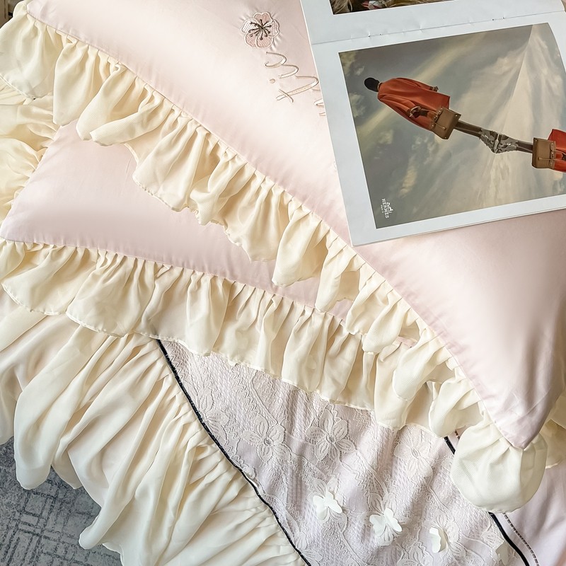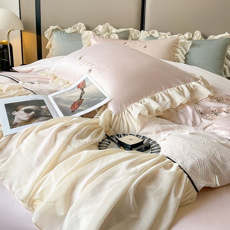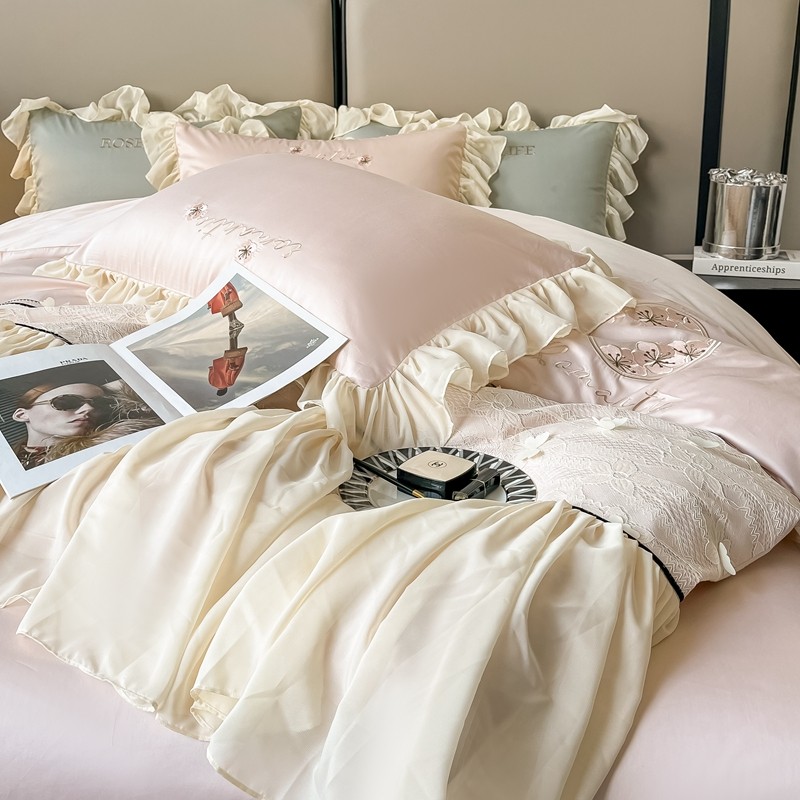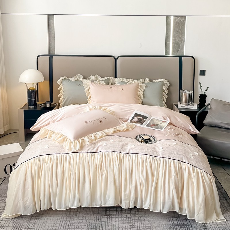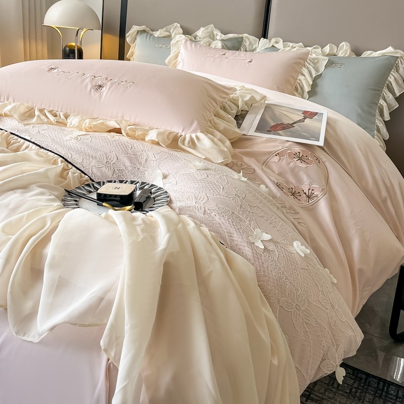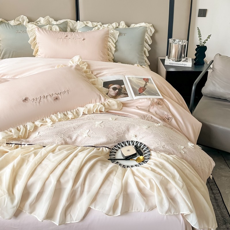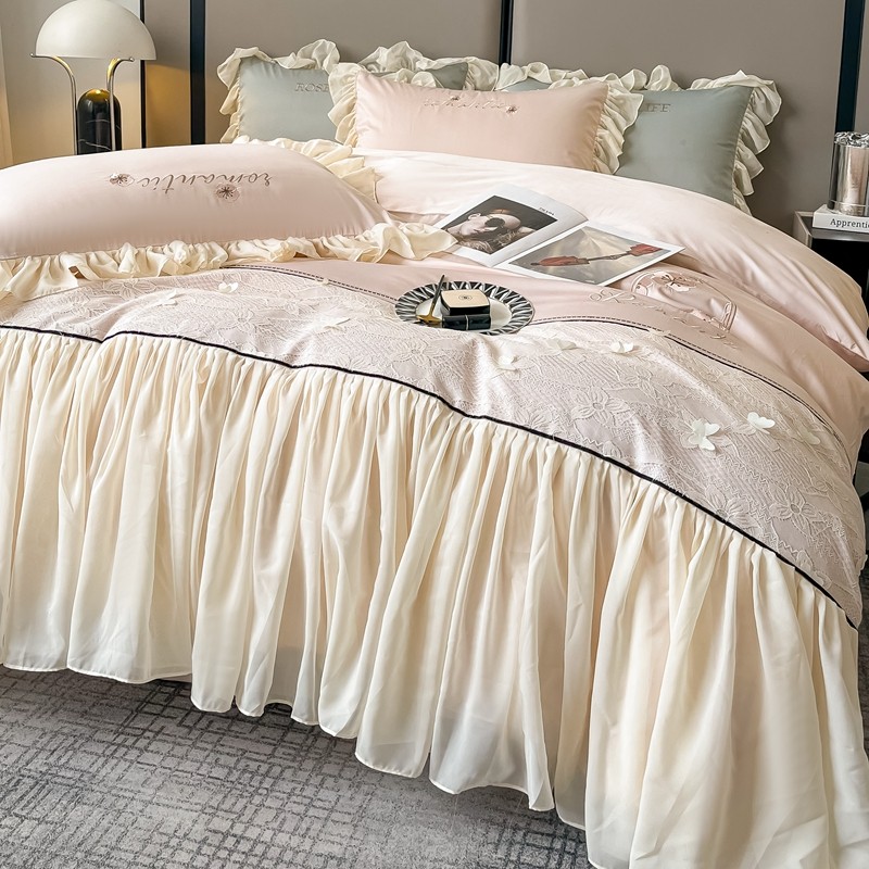 栩裕纺织 2025新款全棉法式轻奢绣花花边四件套 柏林少女