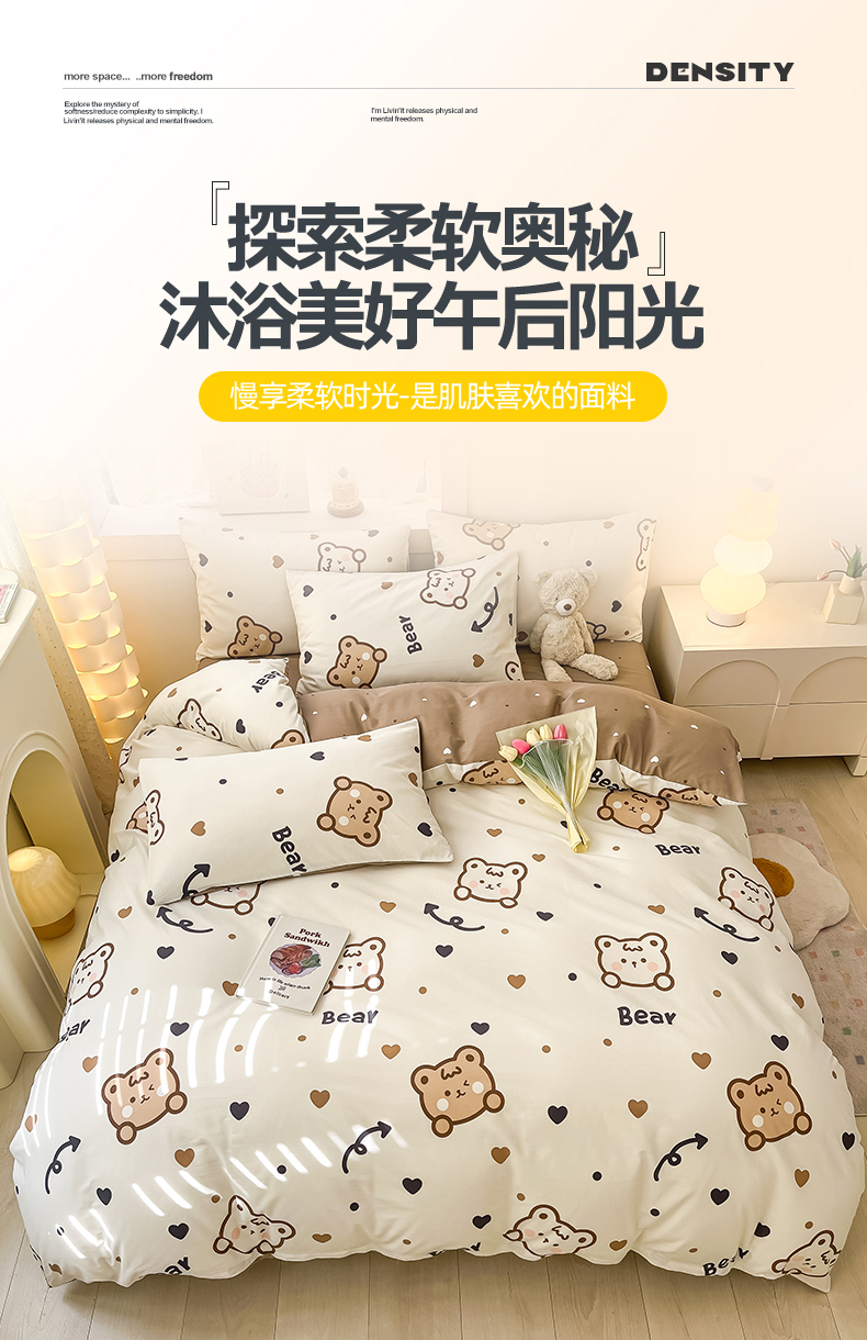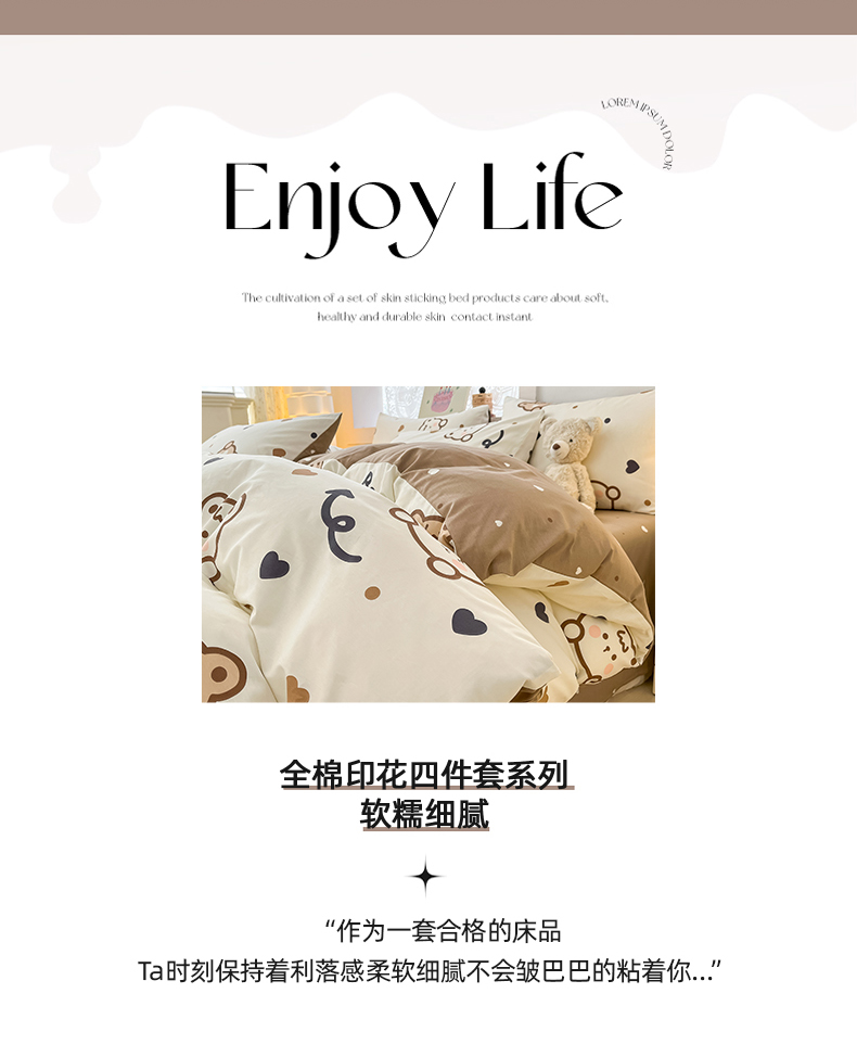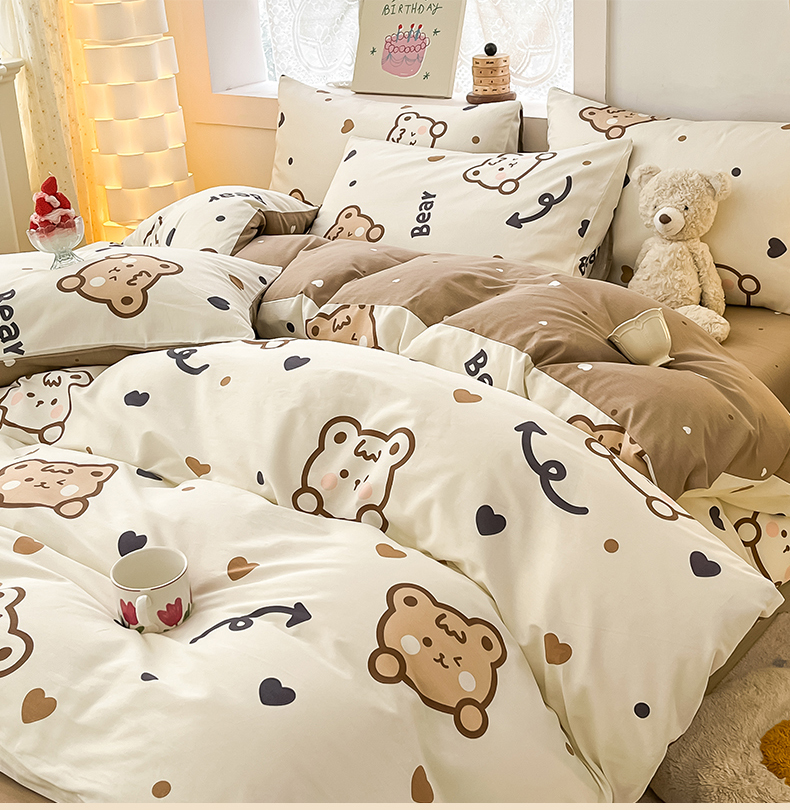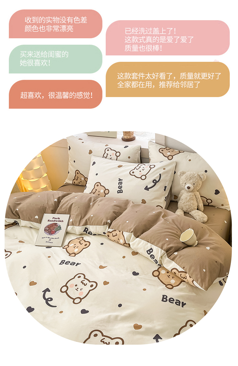 曼之夏 2023新款全棉可爱卡通印花四件套 点点熊