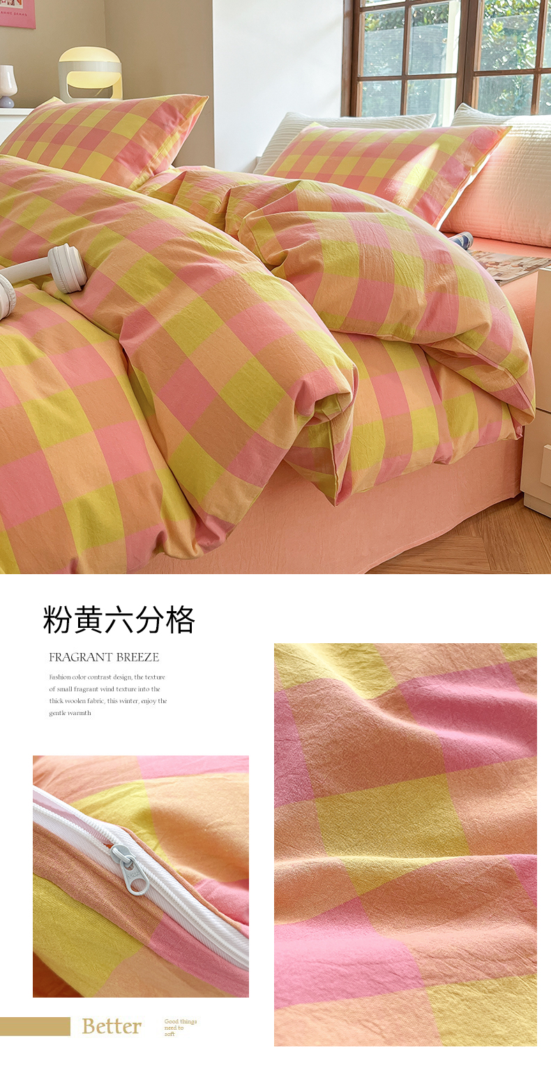 当前位置: 91家纺网 > 商品网购 > 床品套件 > 四件套 > 水洗棉四件套 > 北欧良品 2023新款色织水洗棉四件套 粉黄六分格
