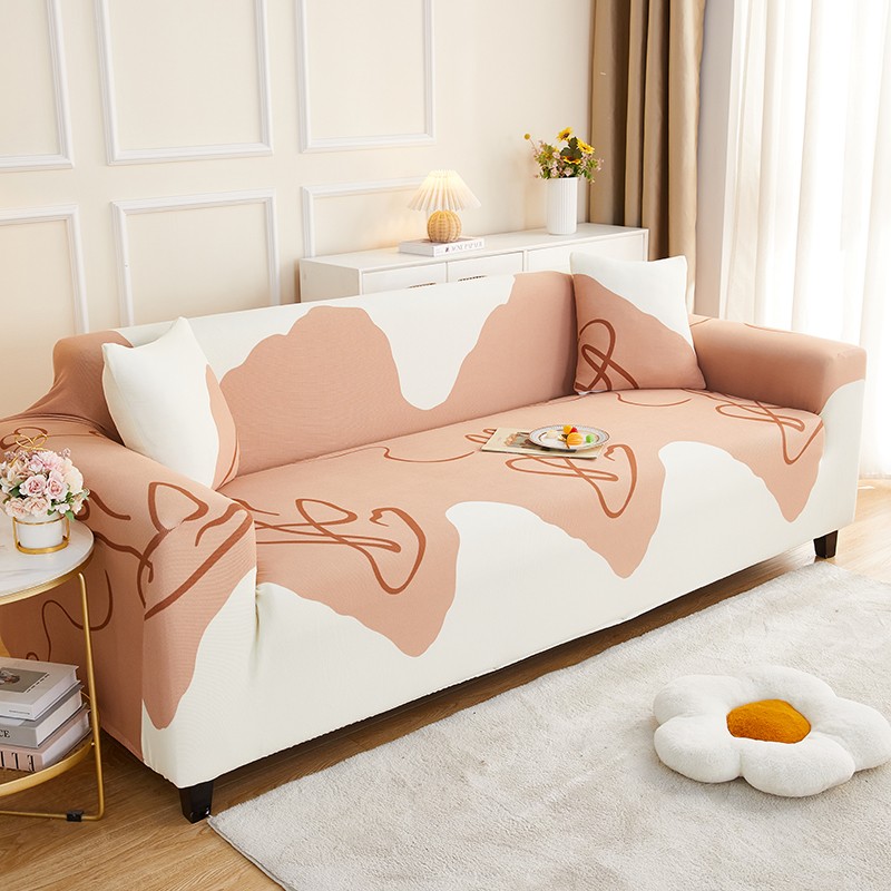商品名称:丝绮鹿2023针织柔肤格三人沙发套松紧款 买一个沙发套默认送一个抱枕套 简爱-杏色