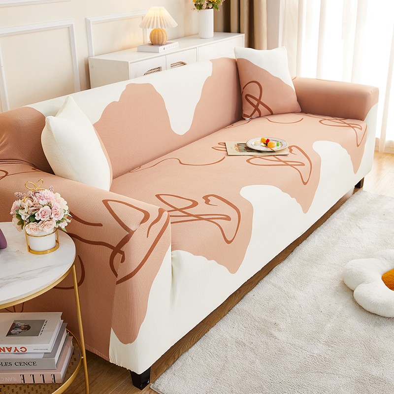 丝绮鹿2023针织柔肤格三人沙发套松紧款 买一个沙发套默认送一个抱枕套 简爱-杏色