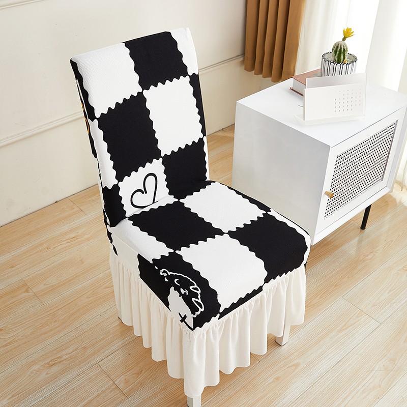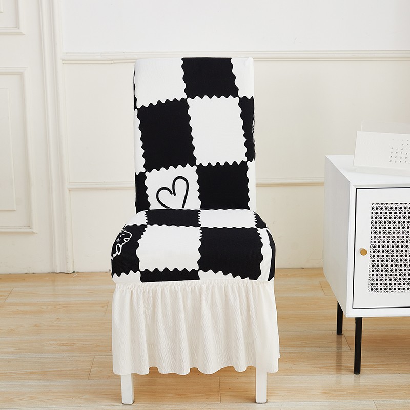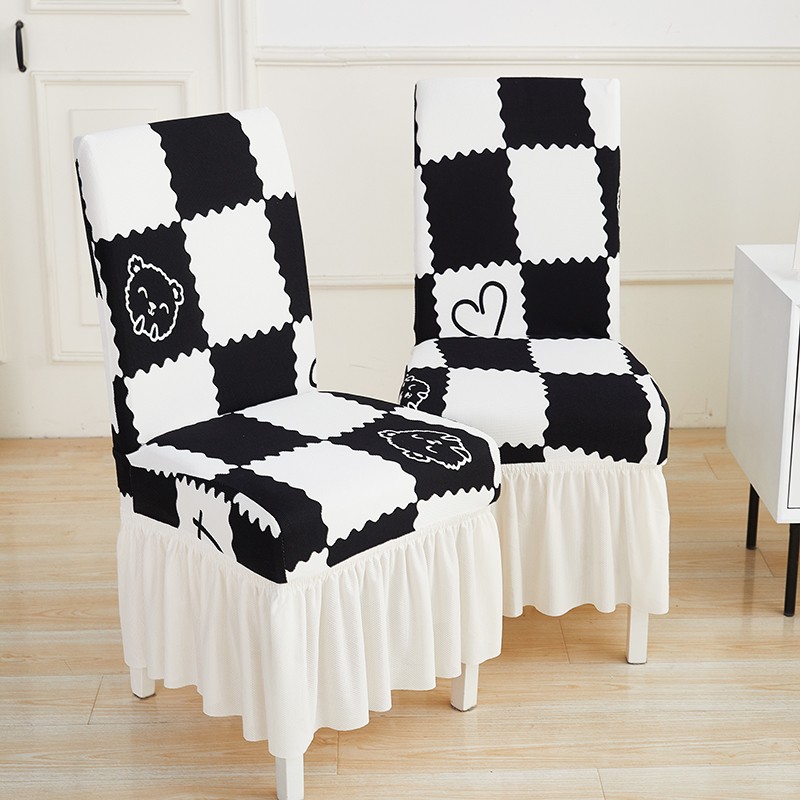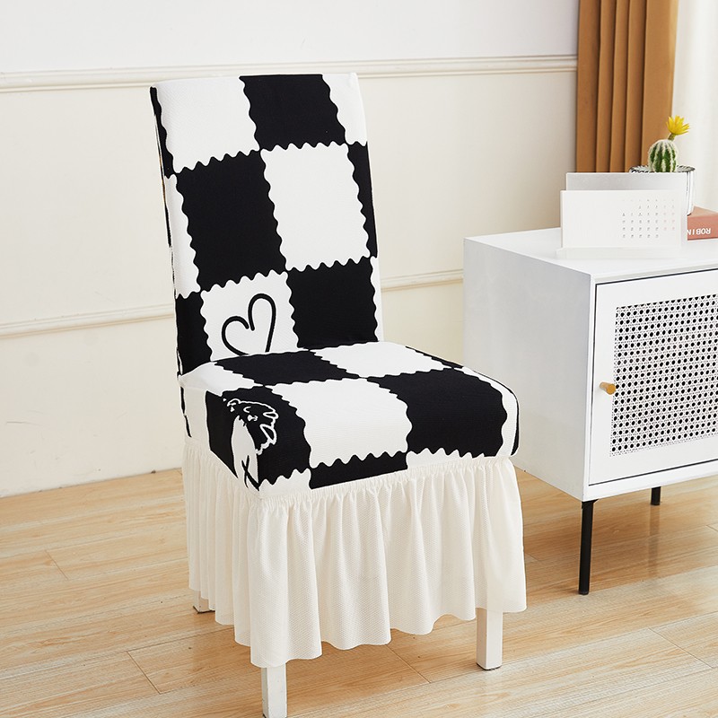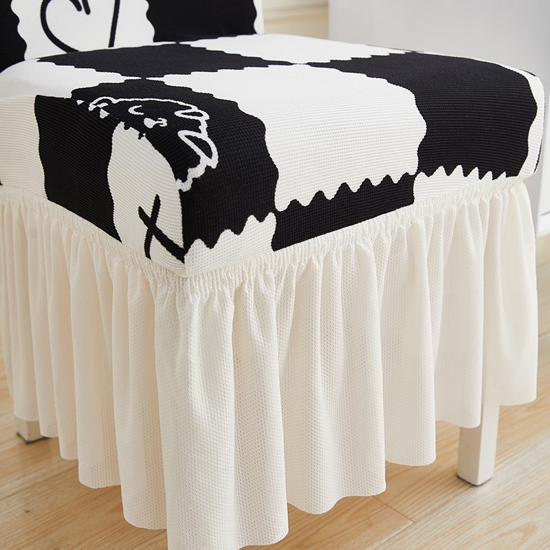 当前位置: 91家纺网 > 商品网购 > 居家布艺 > 坐垫/椅垫/沙发垫 > 椅垫 > 丝绮鹿 2023新款针织柔肤格椅子套裙边款 黑白格