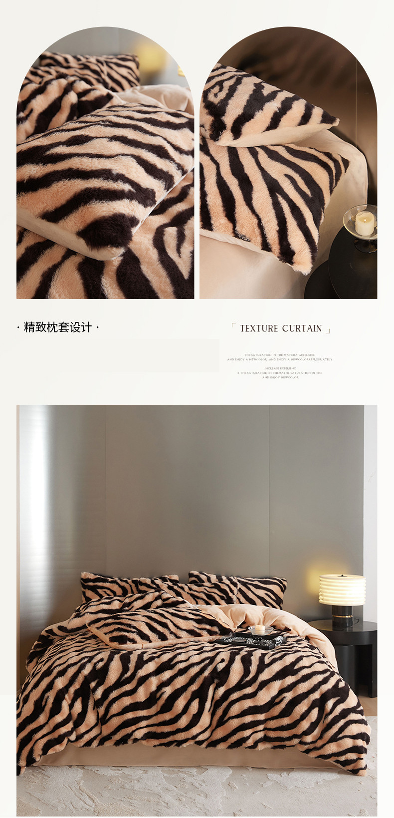 商品名称:金奇达家纺 2024秋冬保暖加厚绒类斑马皮草绒四件套-【美拉德】系列 斑马黄
