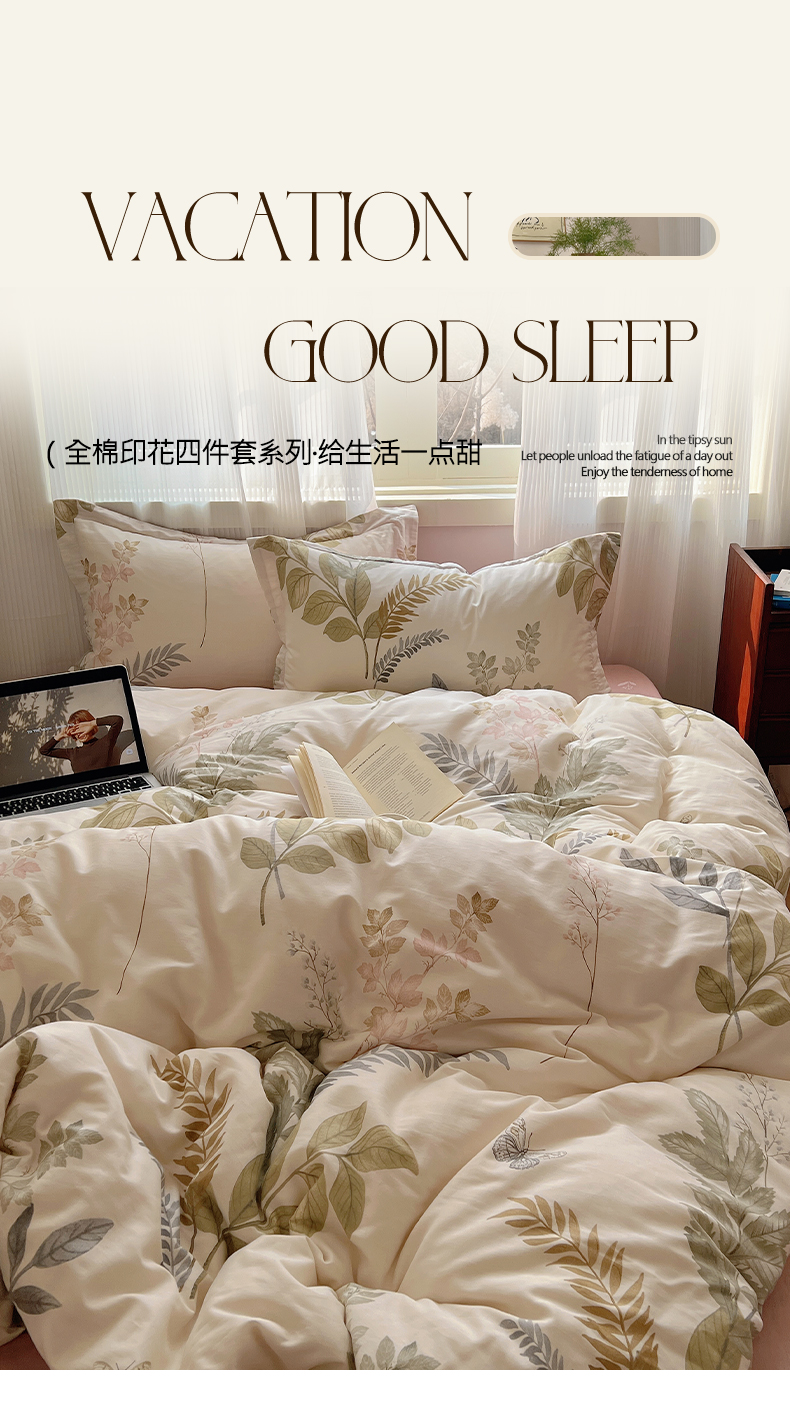 (总)盛馨家纺 2023新款全棉喷气纯棉床笠印花简约田园风三件套四件套,花丛兔,锦鲤,快乐小狗,梦幻,梦境小兔,入夏,若微,溪沐,叶墨新晨,樱桃兔