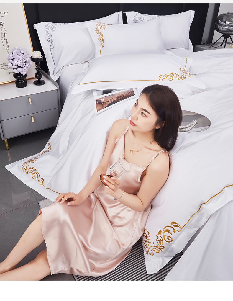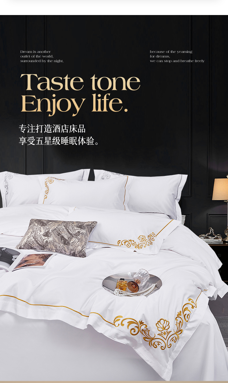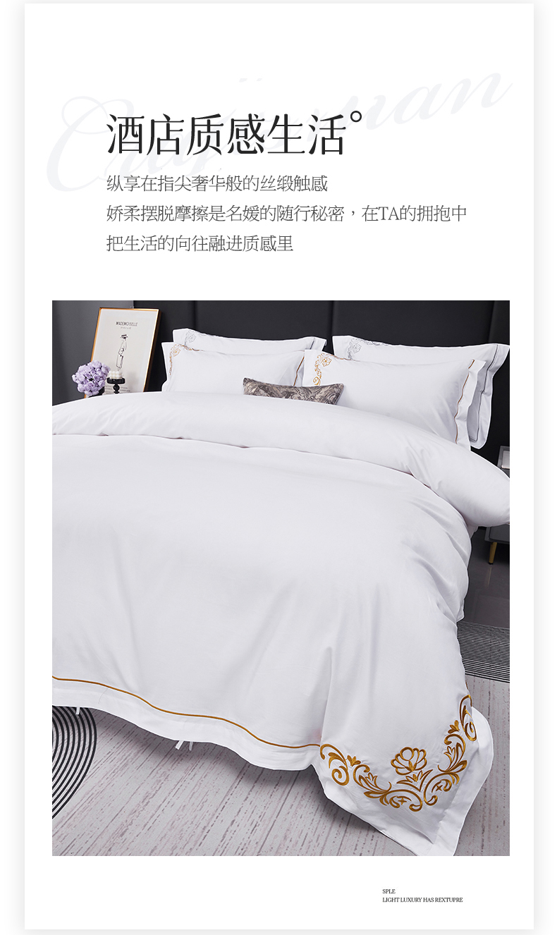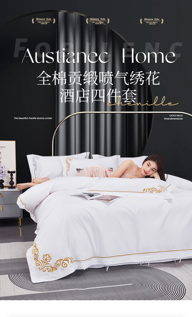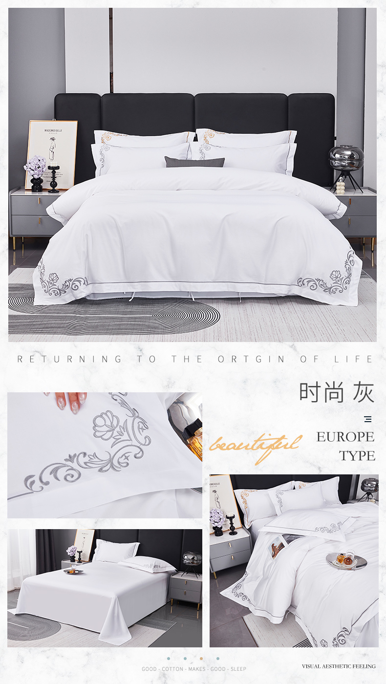 当前位置: 91家纺网 > 商品网购 > 床品套件 > 四件套 > 全棉普通四件套 > 罗菲尼酒店用品 2025新款全棉高支贡缎喷气绣花酒店宾馆四件套 时尚 灰