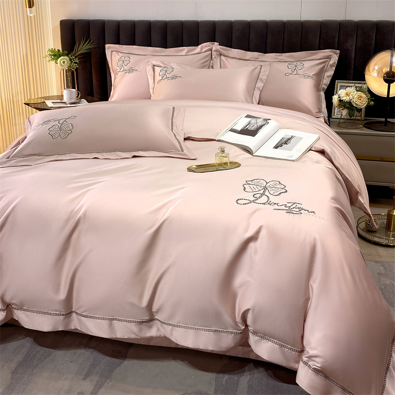 玖玖爱家纺 2024新款160支双股长绒棉小香风系列四件套 小香风豆沙粉