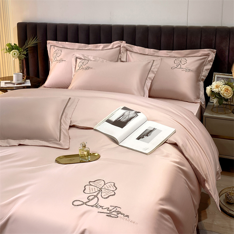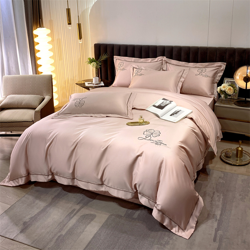 (总)玖玖爱家纺 2023新款120支贡缎长绒棉刺绣梦柔系列四件套,梦柔-香槟金,梦柔-香橙桔,梦柔-高级灰,梦柔-水蓝,梦柔-芙蓉玉