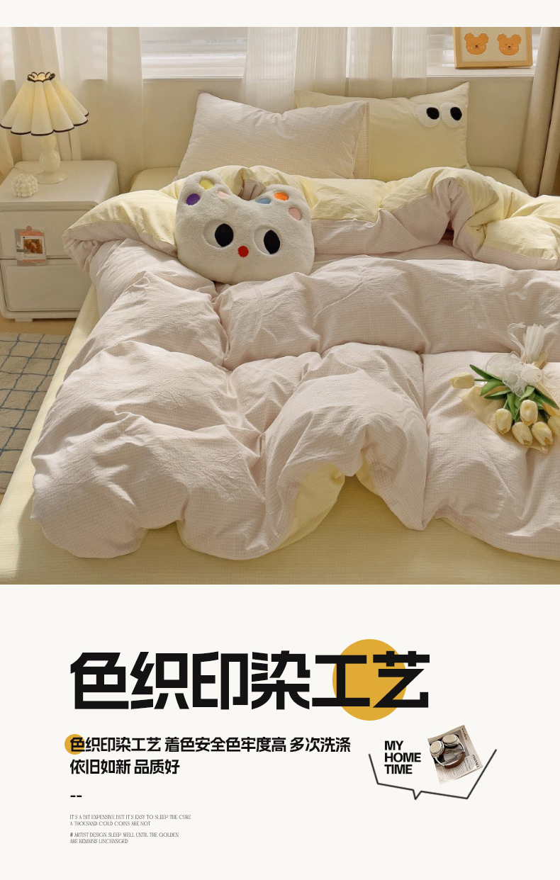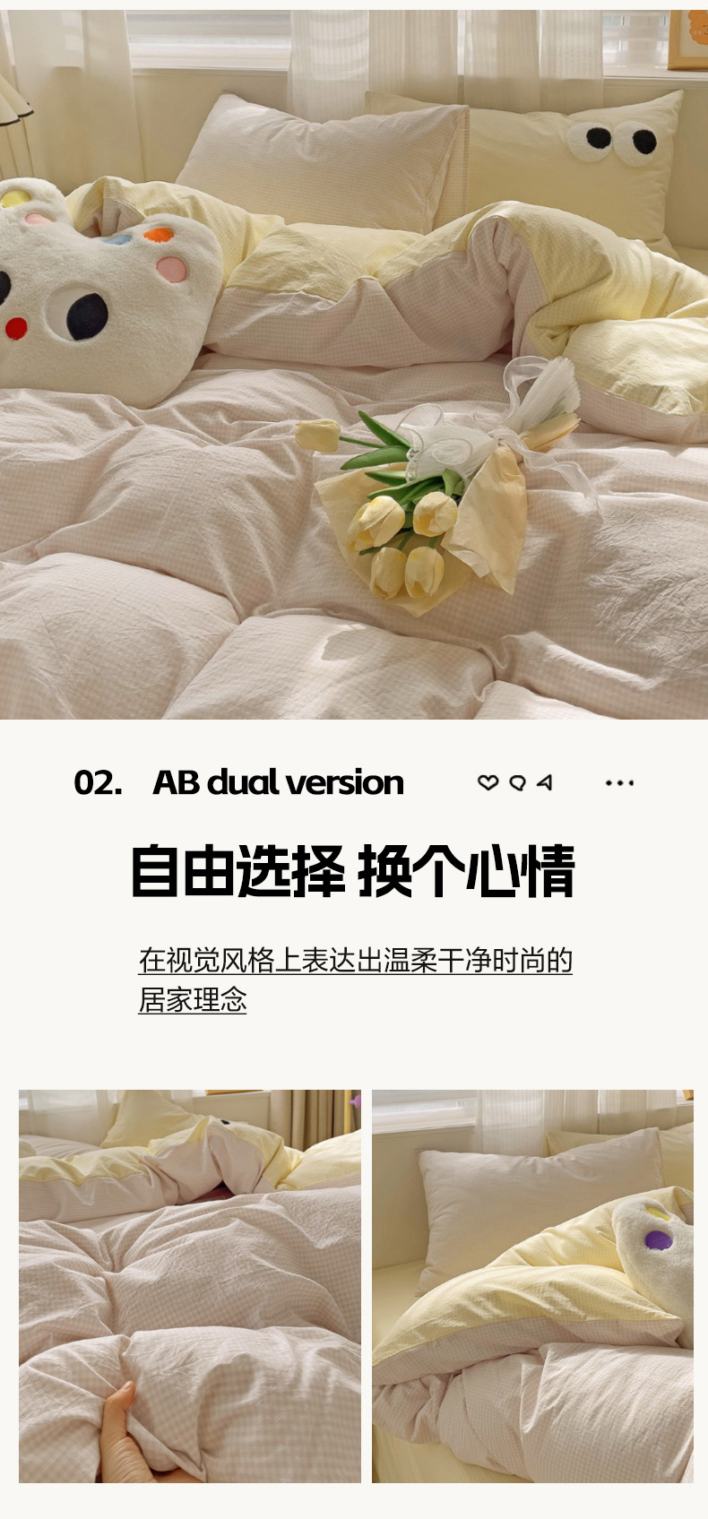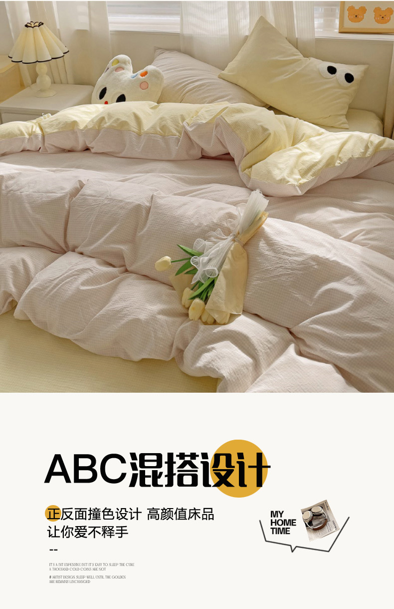 当前位置: 91家纺网 > 商品网购 > 床品套件 > 四件套 > 水洗棉四件套 > 丽涵家纺 2024新款ins风混搭水洗棉全棉毛巾绣系列格子四件套 混搭紫奶油