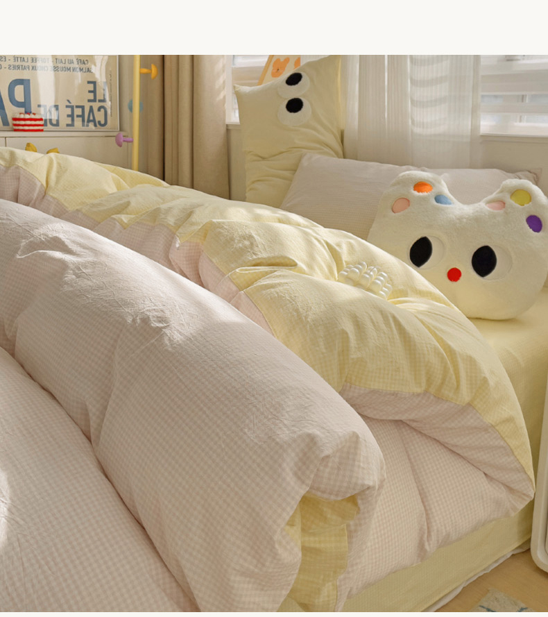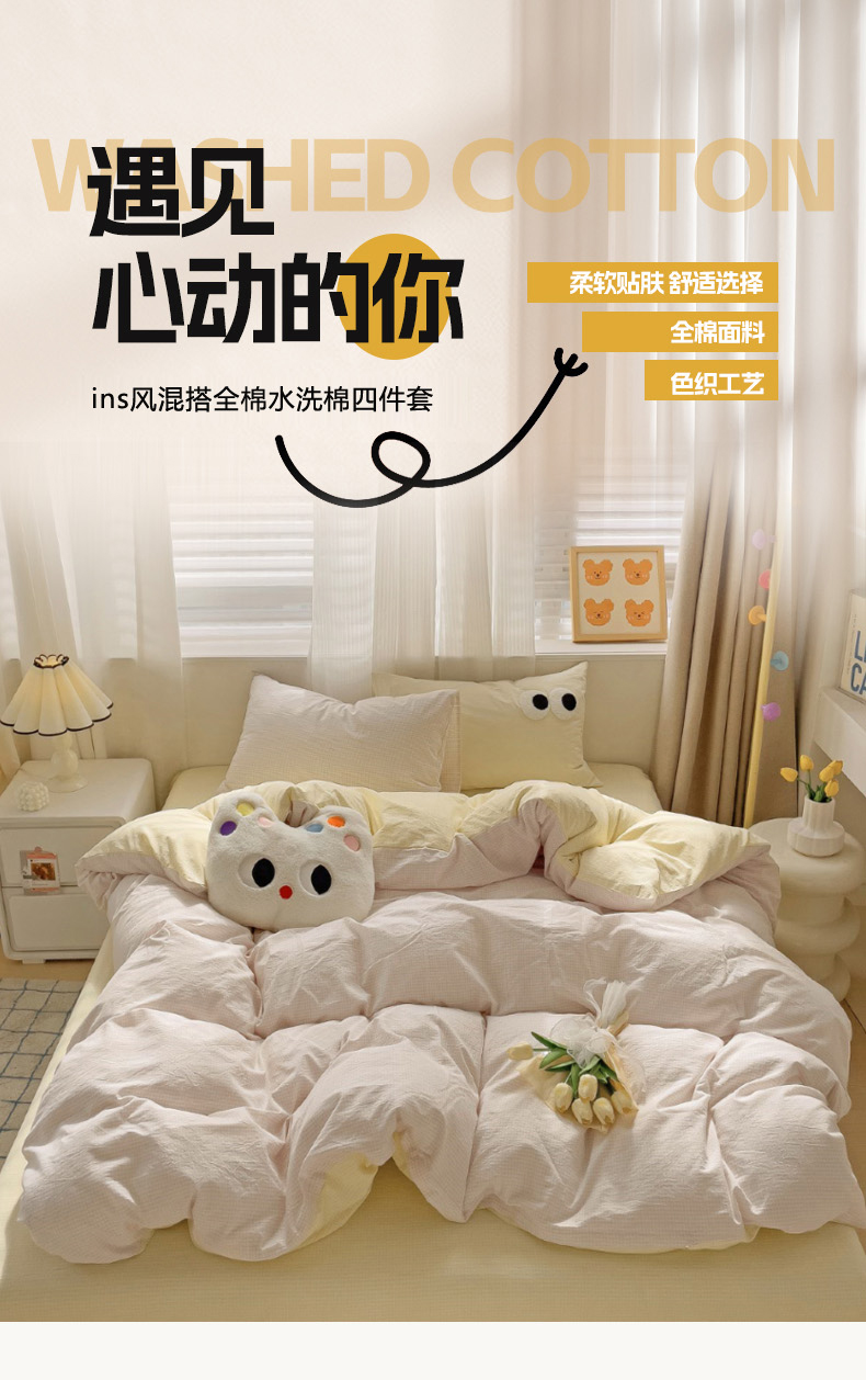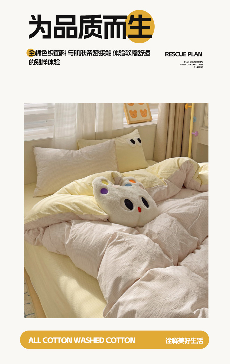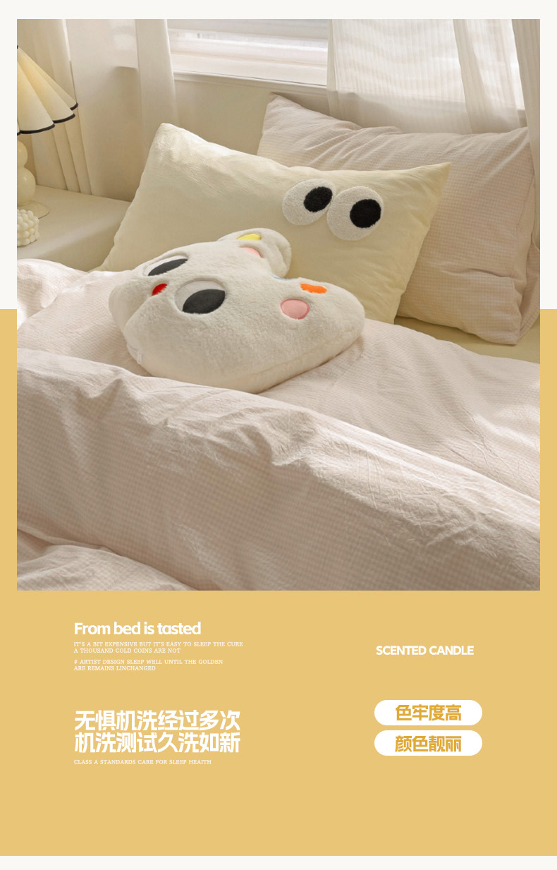 当前位置: 91家纺网 > 商品网购 > 床品套件 > 四件套 > 水洗棉四件套 > 丽涵家纺 2024新款ins风混搭水洗棉全棉毛巾绣系列格子四件套 混搭紫奶油