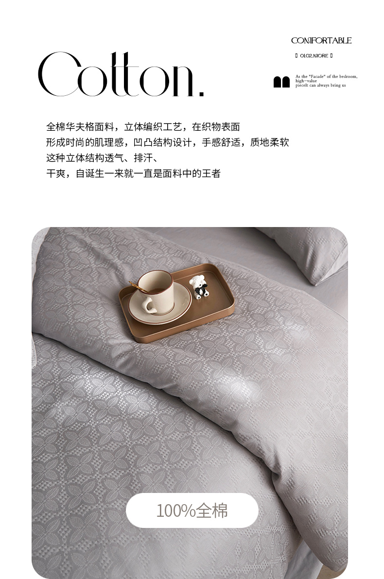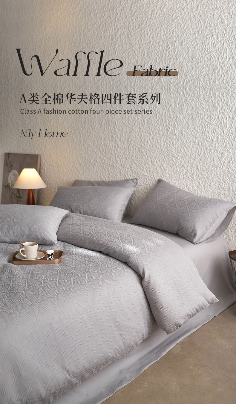 商品名称:AB家纺 2024新款全棉华夫格四件套 四叶草-陨石灰
