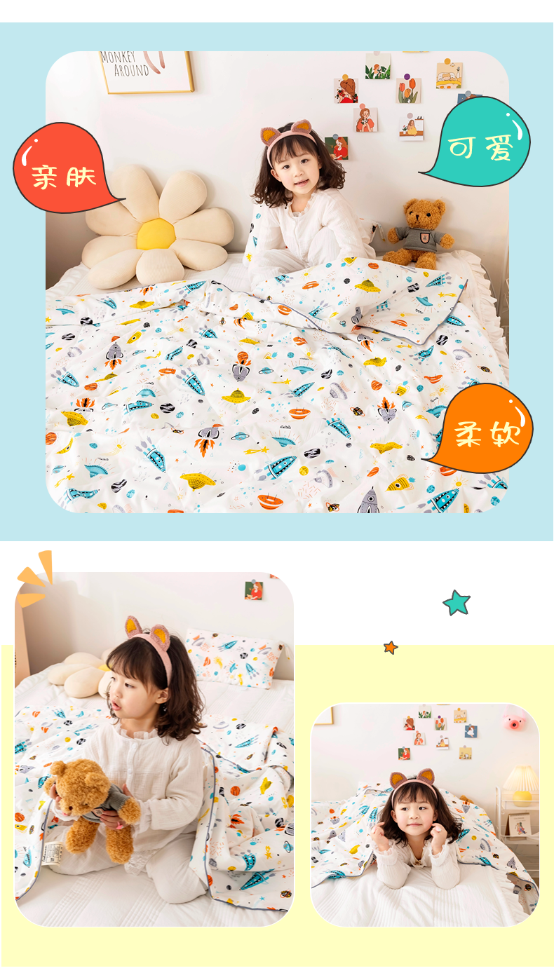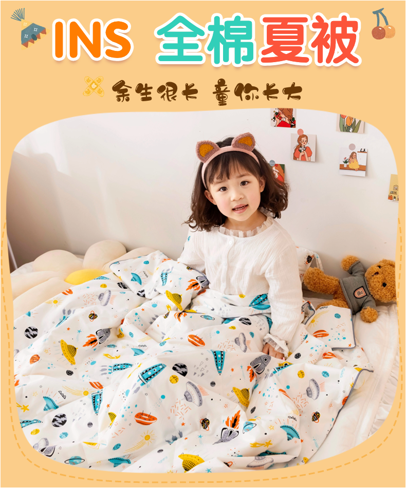 商品名称:十九色 2024新款全棉13372 ins儿童夏被 火箭