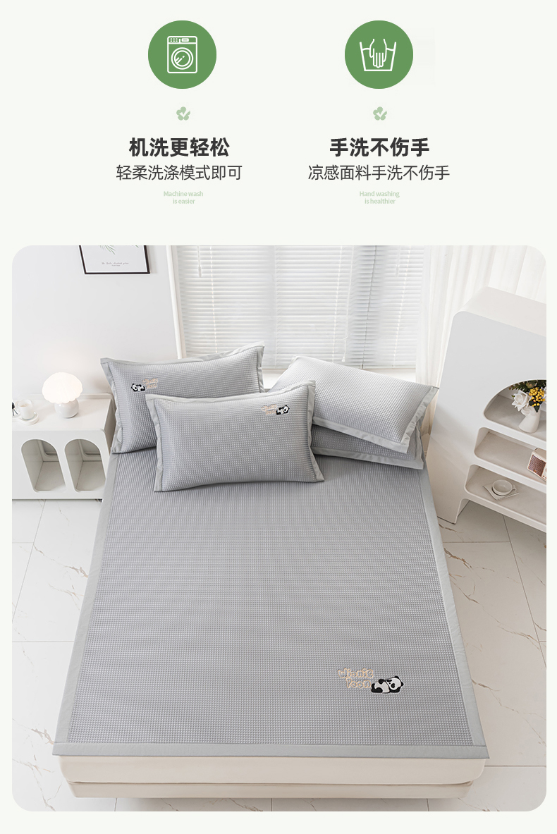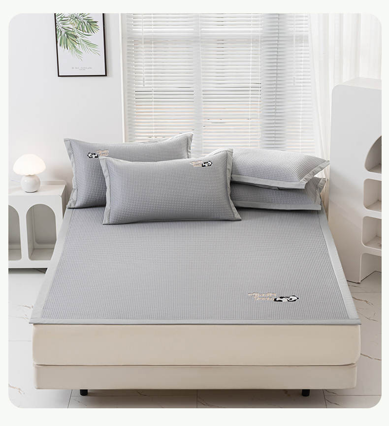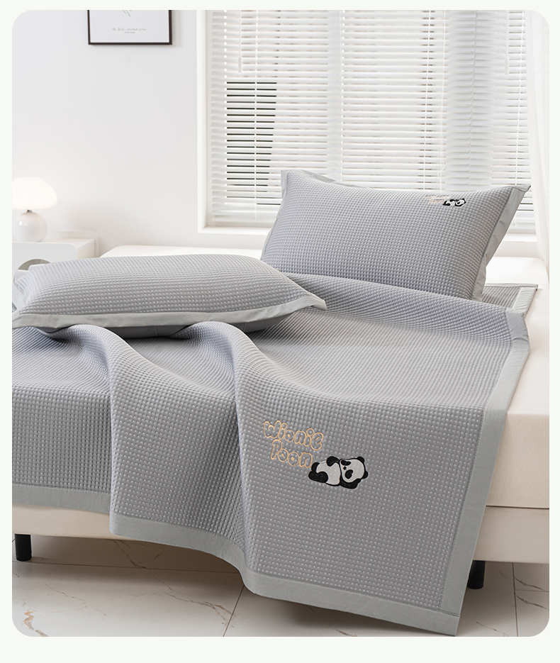 商品名称:春晓 2024新款高分子pe华夫格熊猫刺绣凉感软席 熊猫-绅士灰