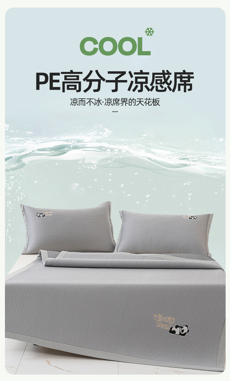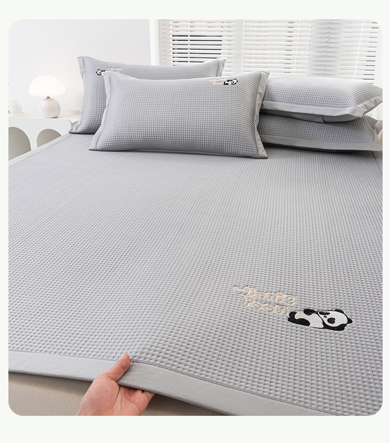 春晓 2024新款高分子pe华夫格熊猫刺绣凉感软席 熊猫-绅士灰