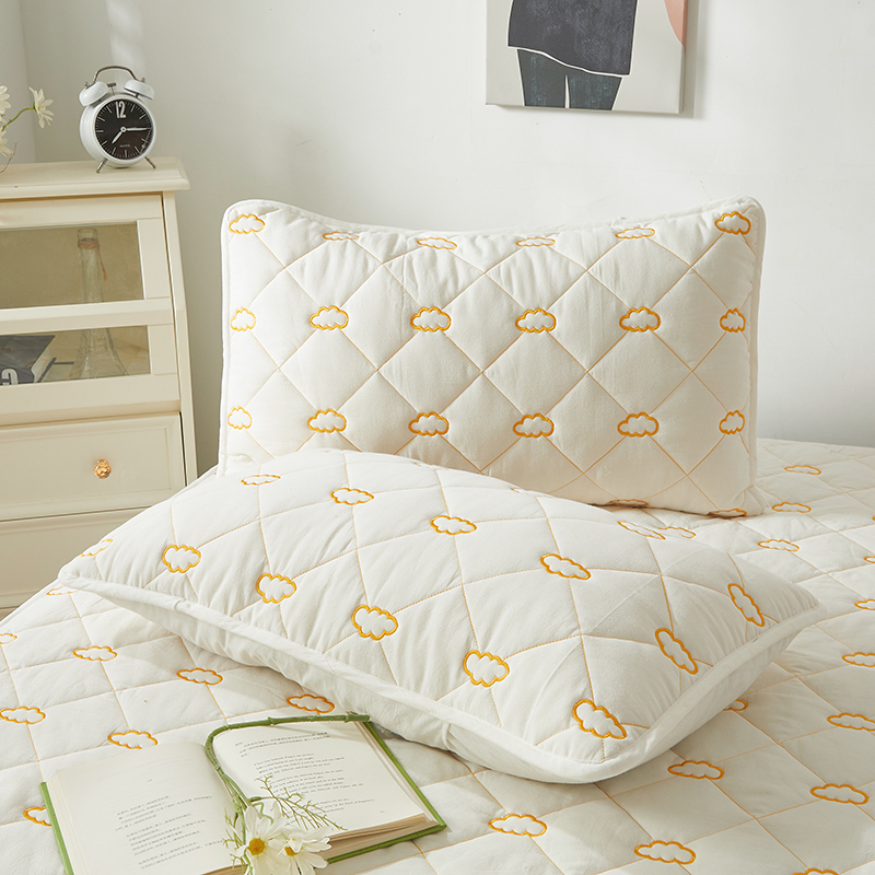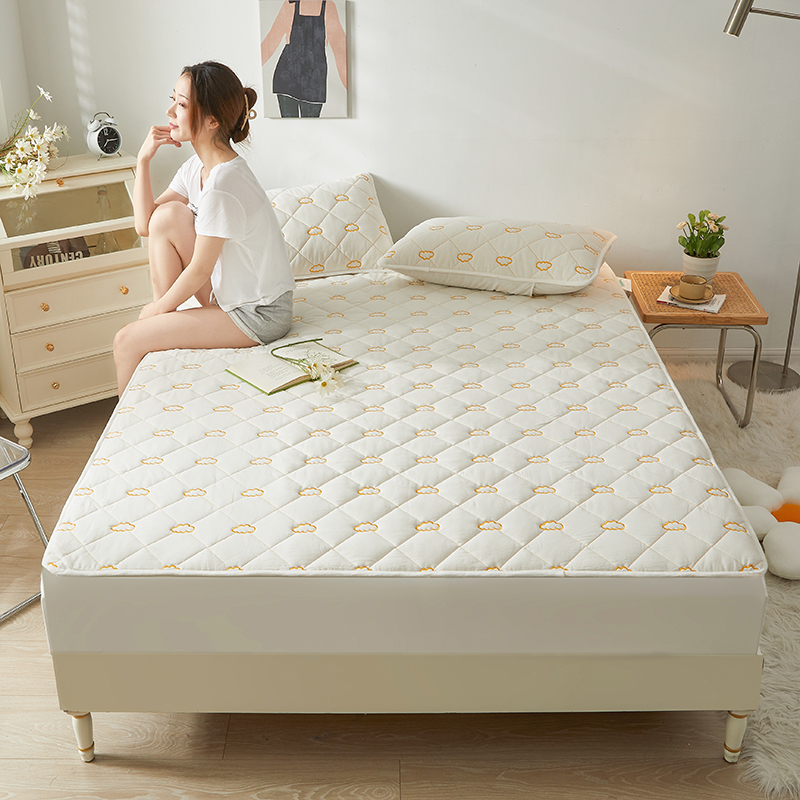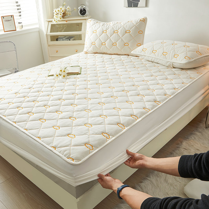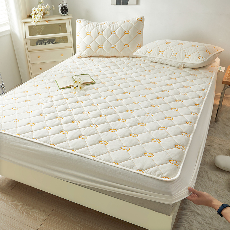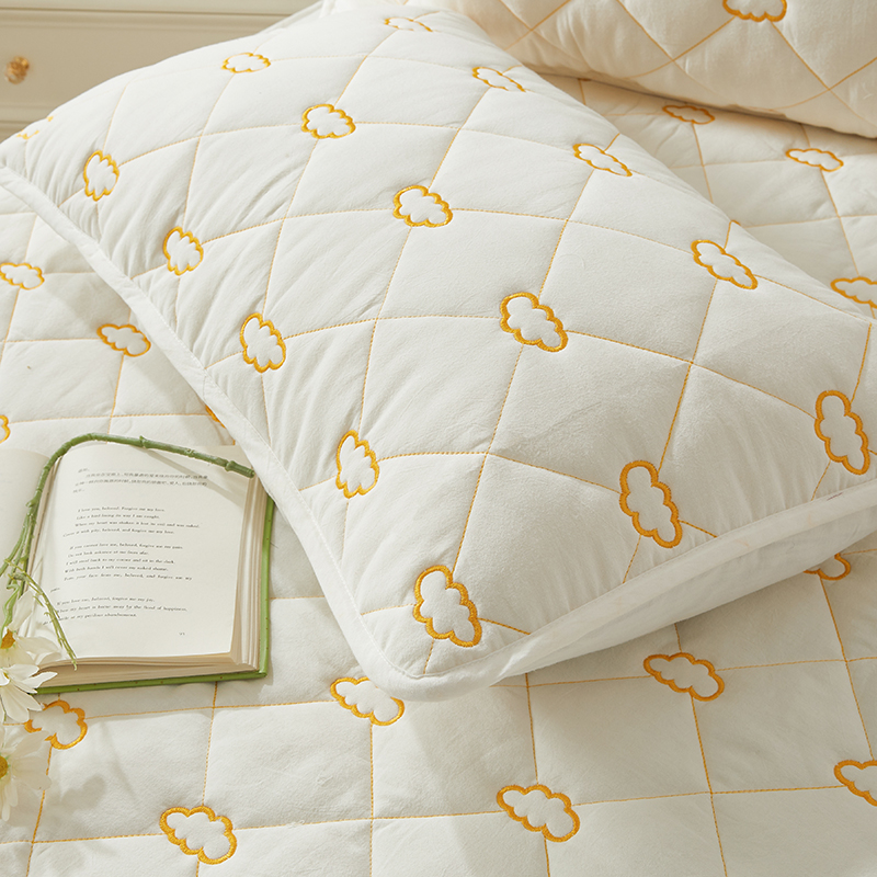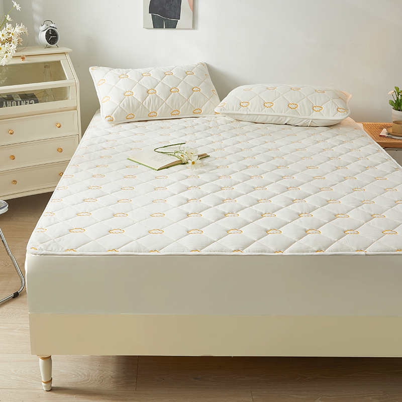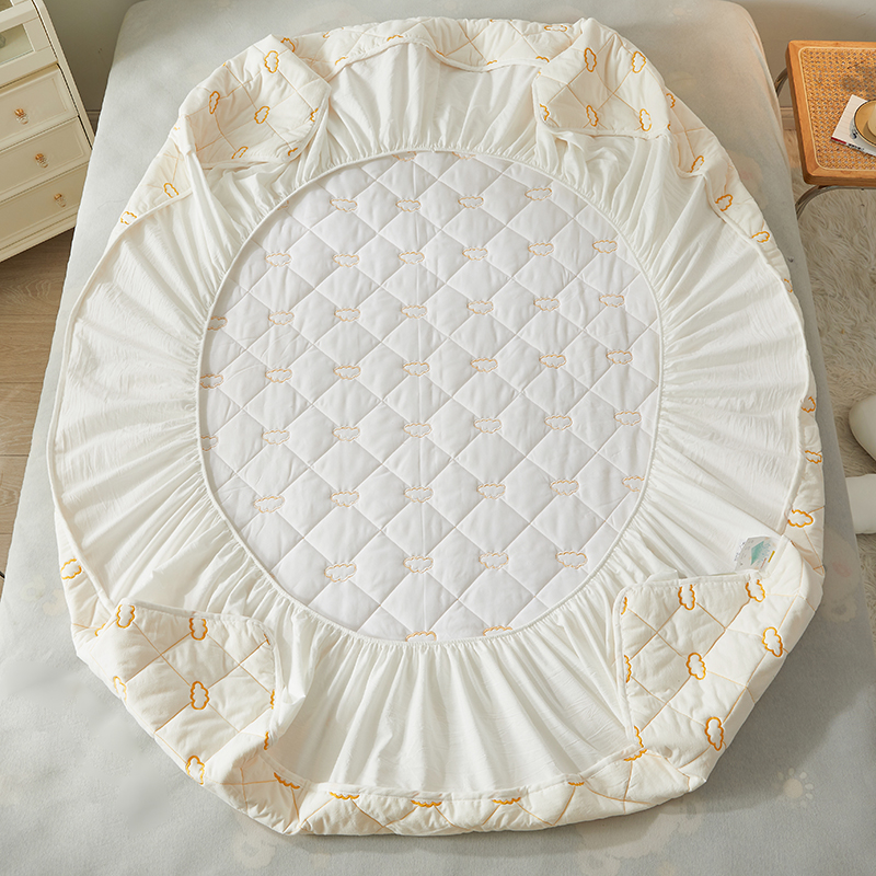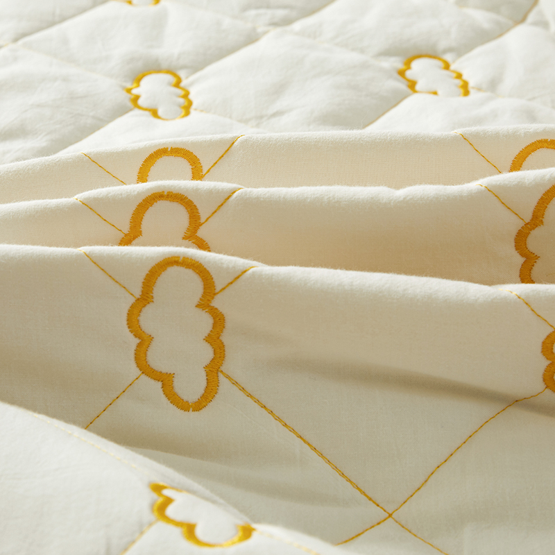 3C 2024新款全棉抗菌抑菌云朵刺绣床笠 珍珠白