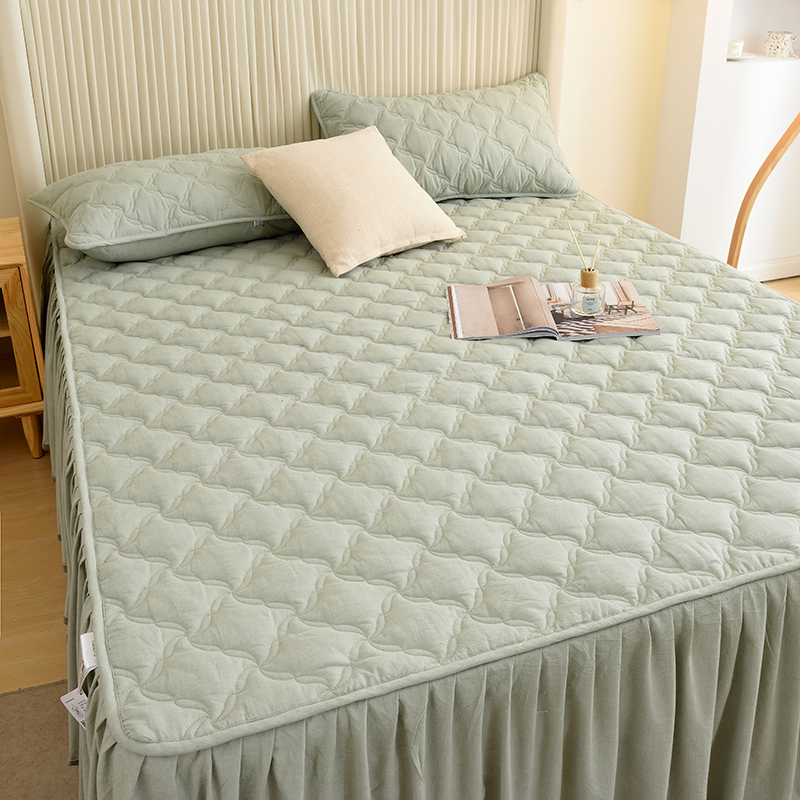 3C 2024新款风车抗菌水洗棉床裙 抹茶绿
