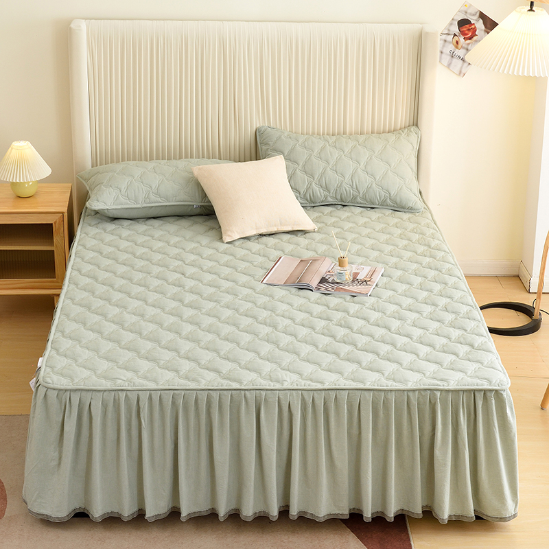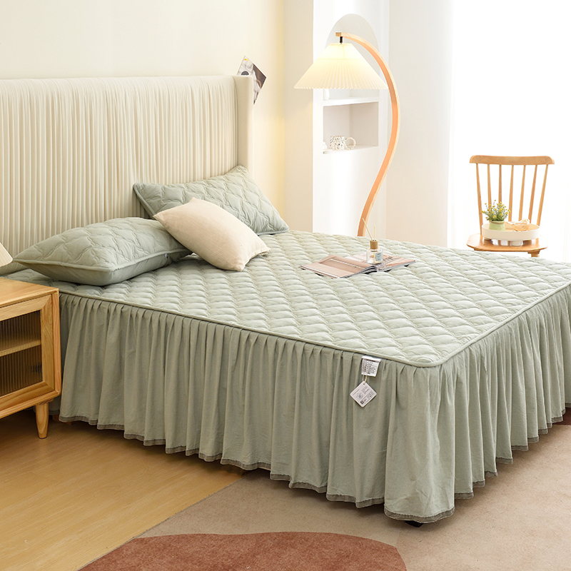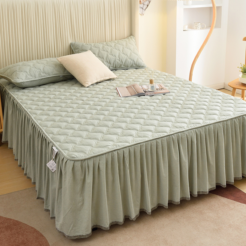 商品名称:3C 2024新款风车抗菌水洗棉床裙 抹茶绿