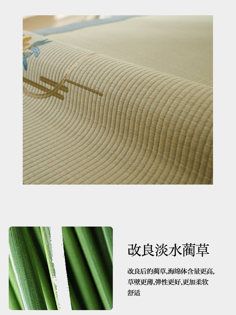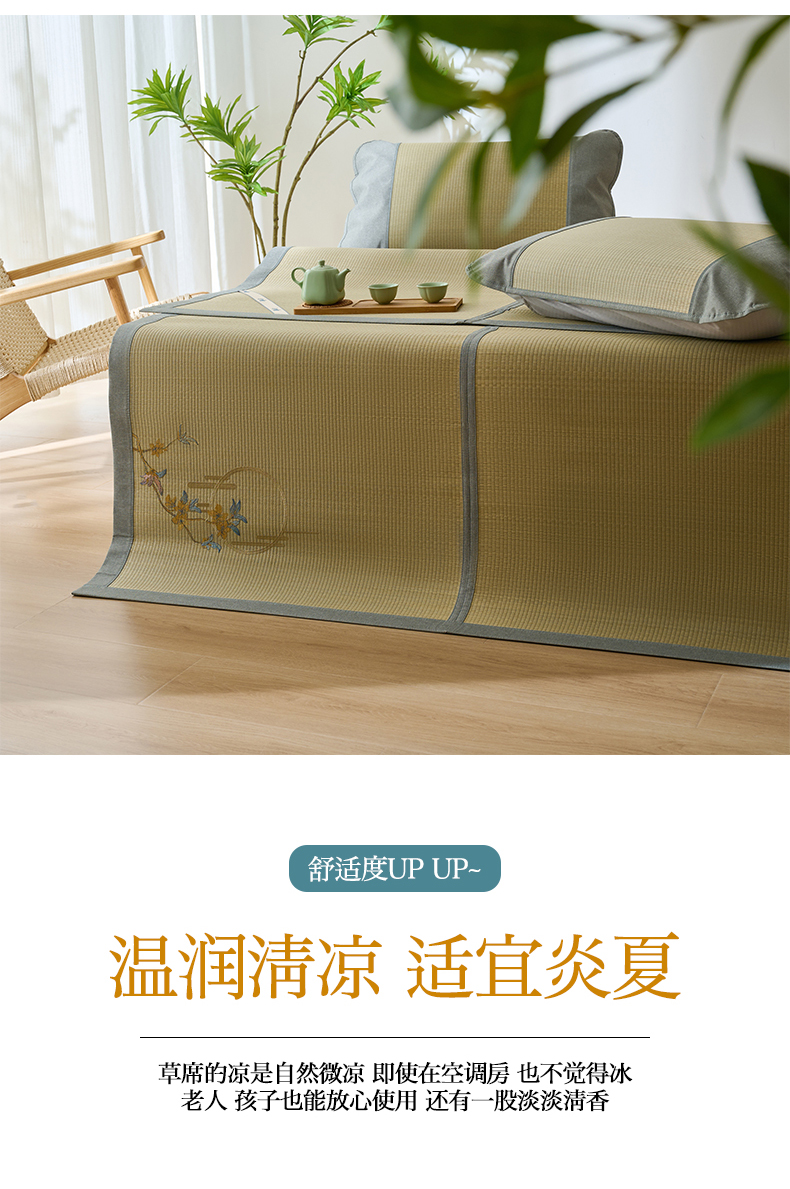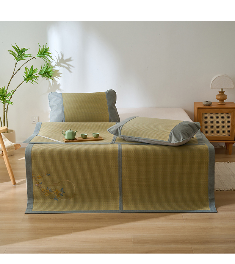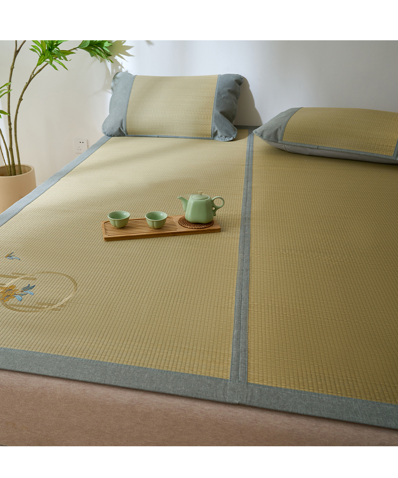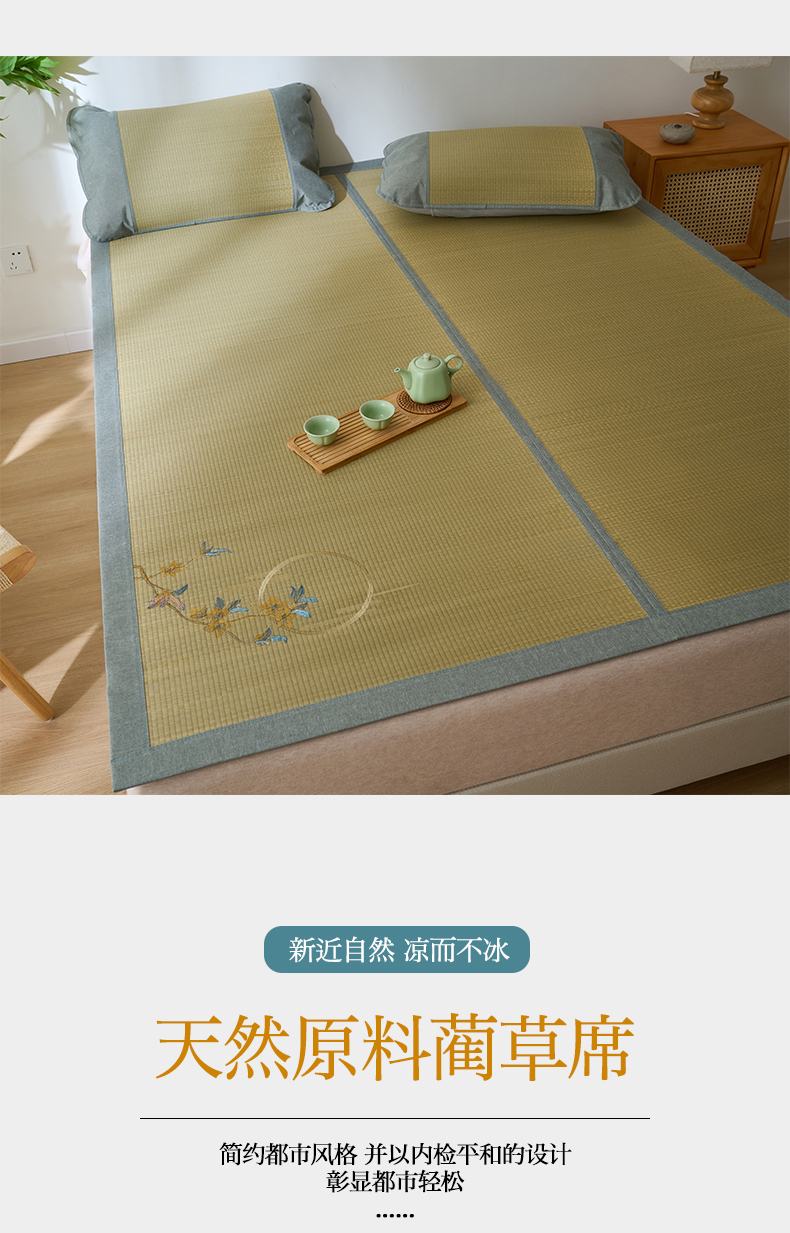 2024新款刺绣天然蔺草席三件套 天然蔺草席