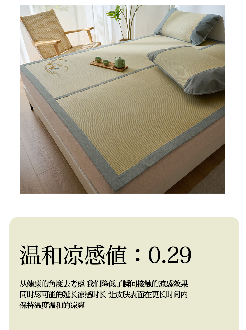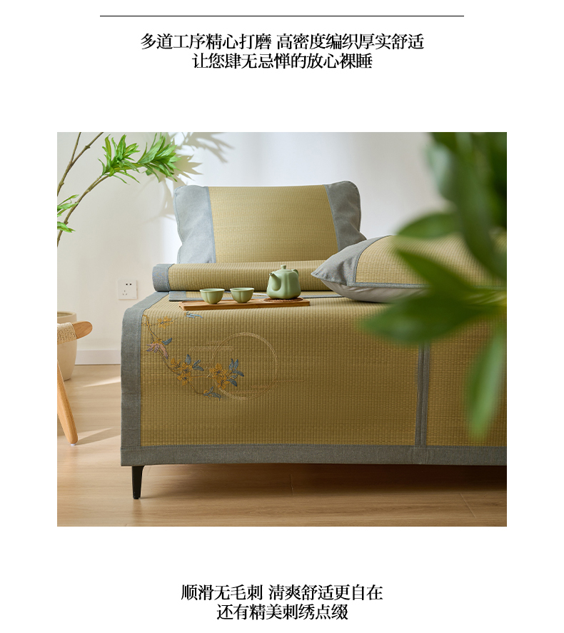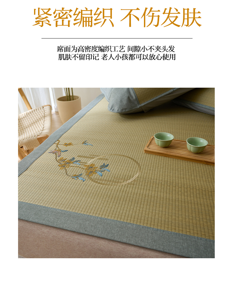 商品名称:2024新款刺绣天然蔺草席三件套 天然蔺草席