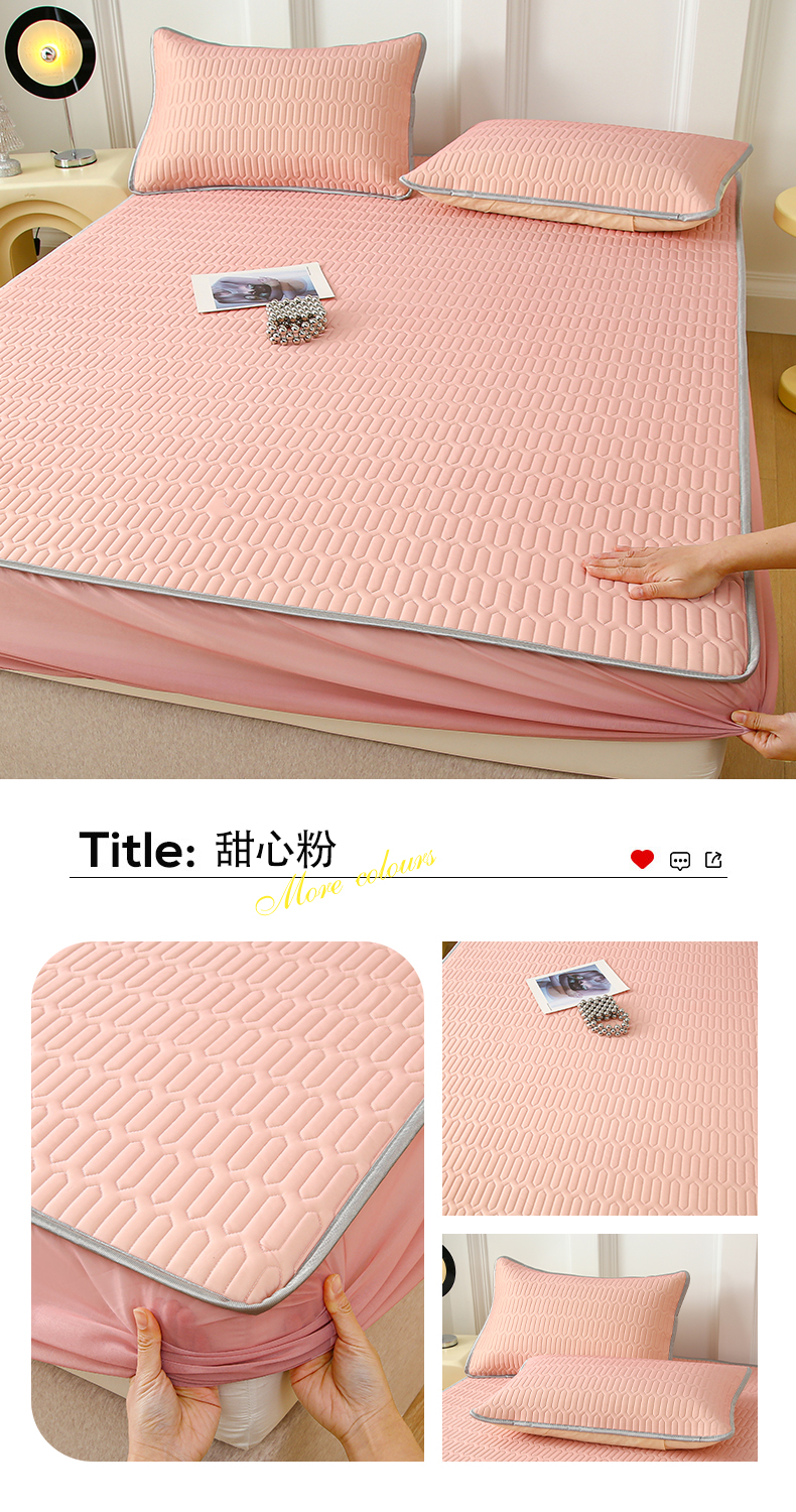 (总)伊人坊 2025新款A类全棉纯棉100s夹棉床笠,砂糖粉,星辰灰