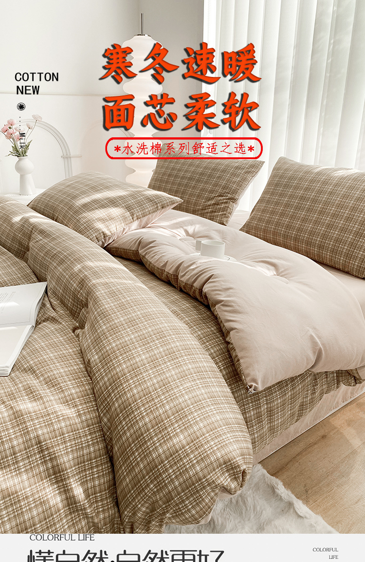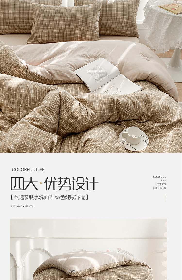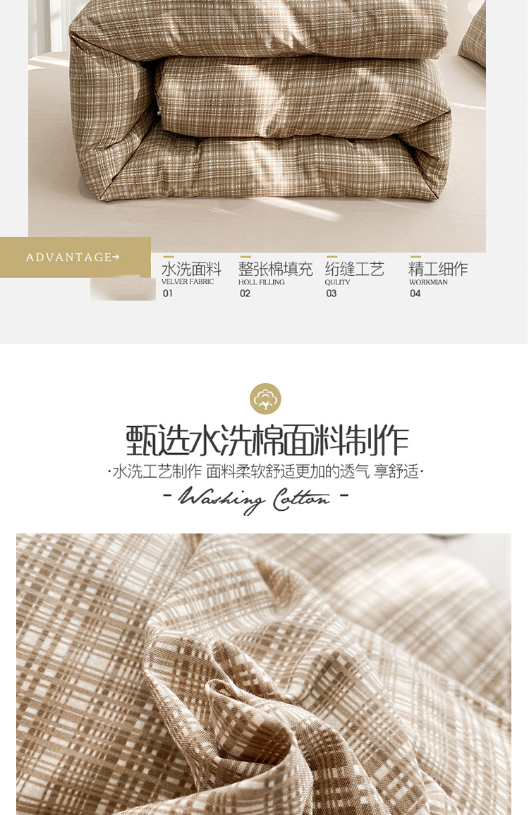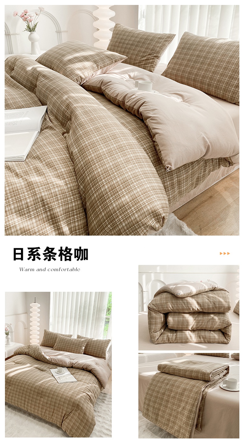 当前位置: 91家纺网 > 商品网购 > 床品套件 > 四件套 > 夏被四件套 > 啊雅家居 2025新款水洗棉条纹印花夏被冬被四件套-床单款 冬被 日系条格咖
