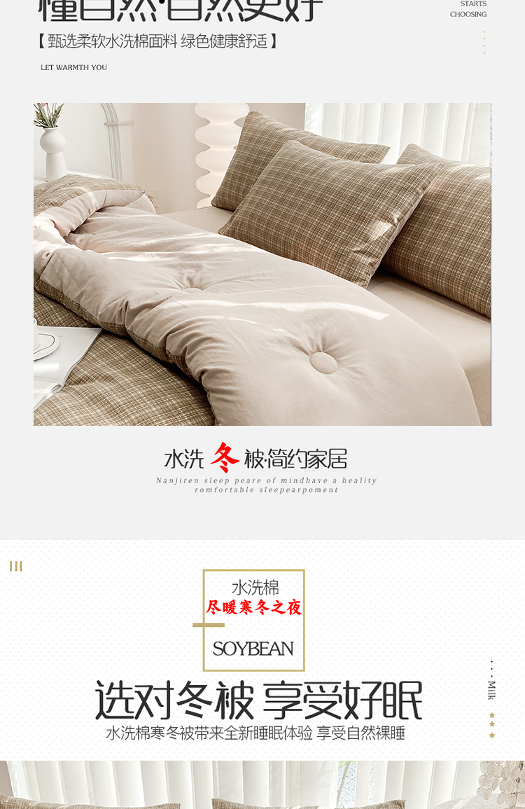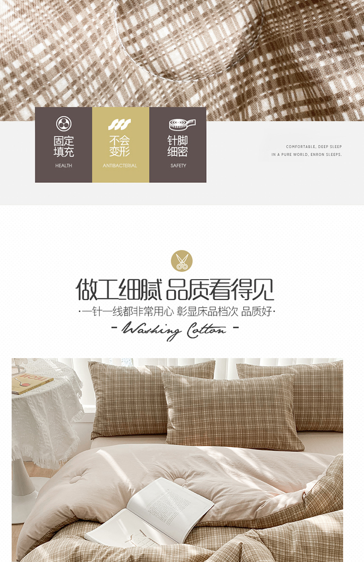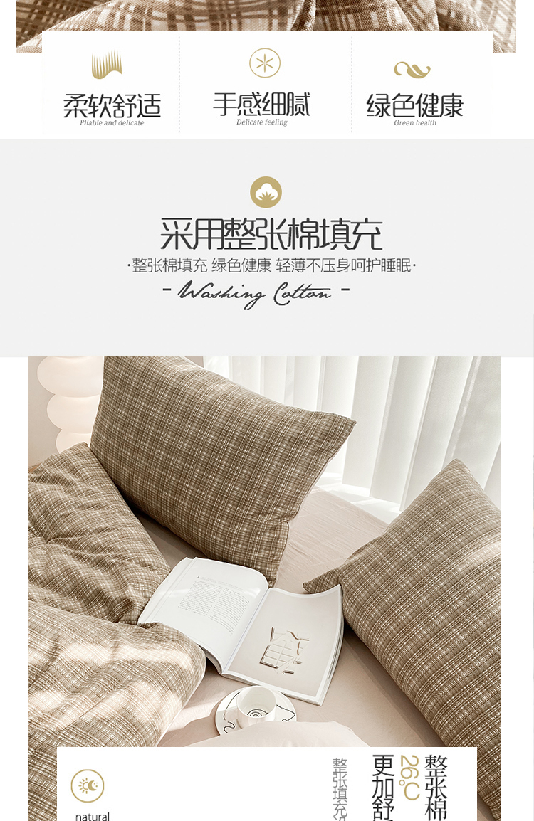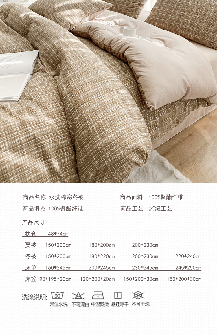 当前位置: 91家纺网 > 商品网购 > 床品套件 > 四件套 > 夏被四件套 > 啊雅家居 2025新款水洗棉条纹印花夏被冬被四件套-床单款 冬被 日系条格咖