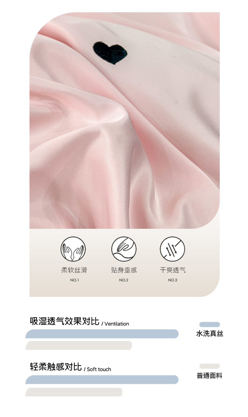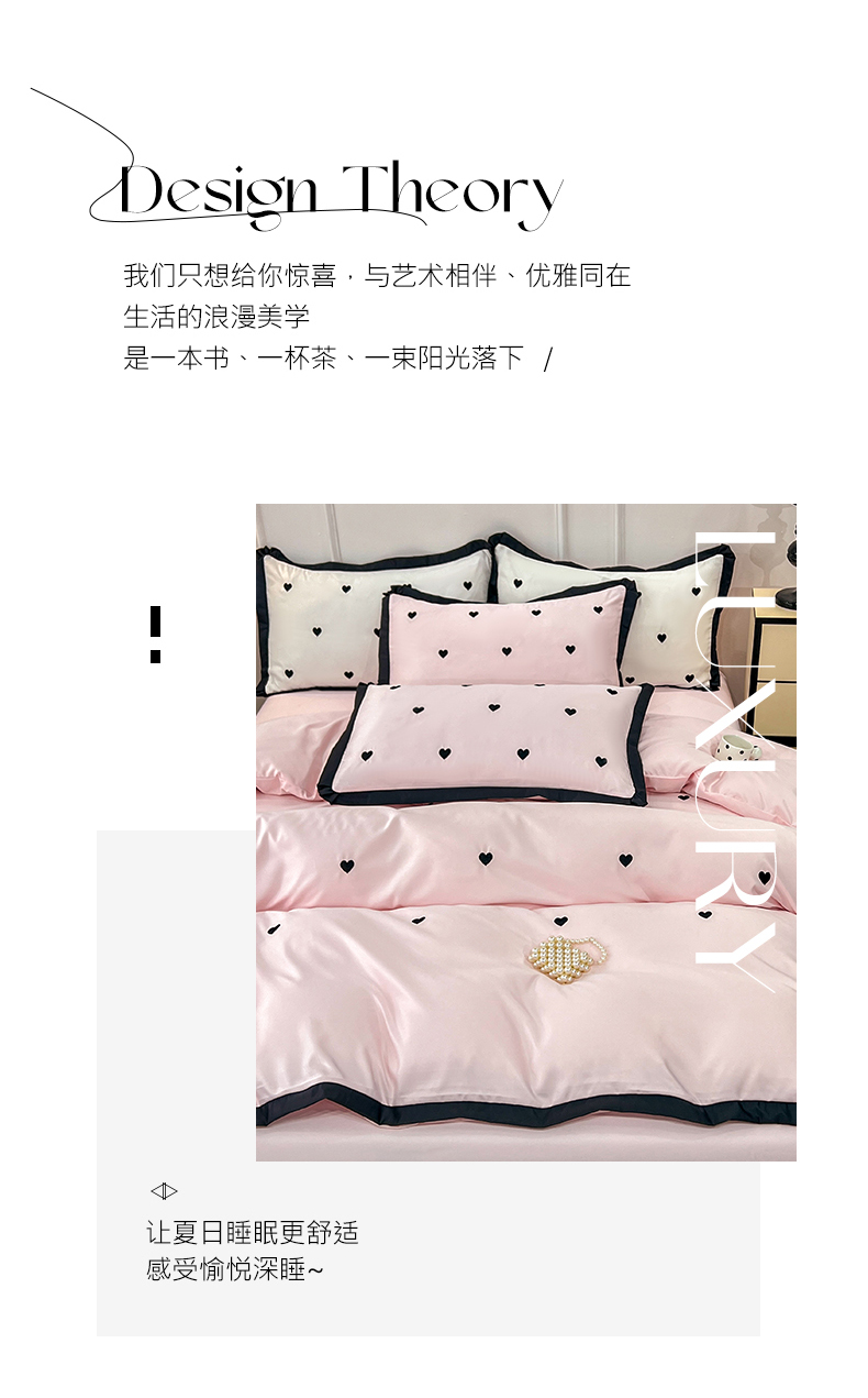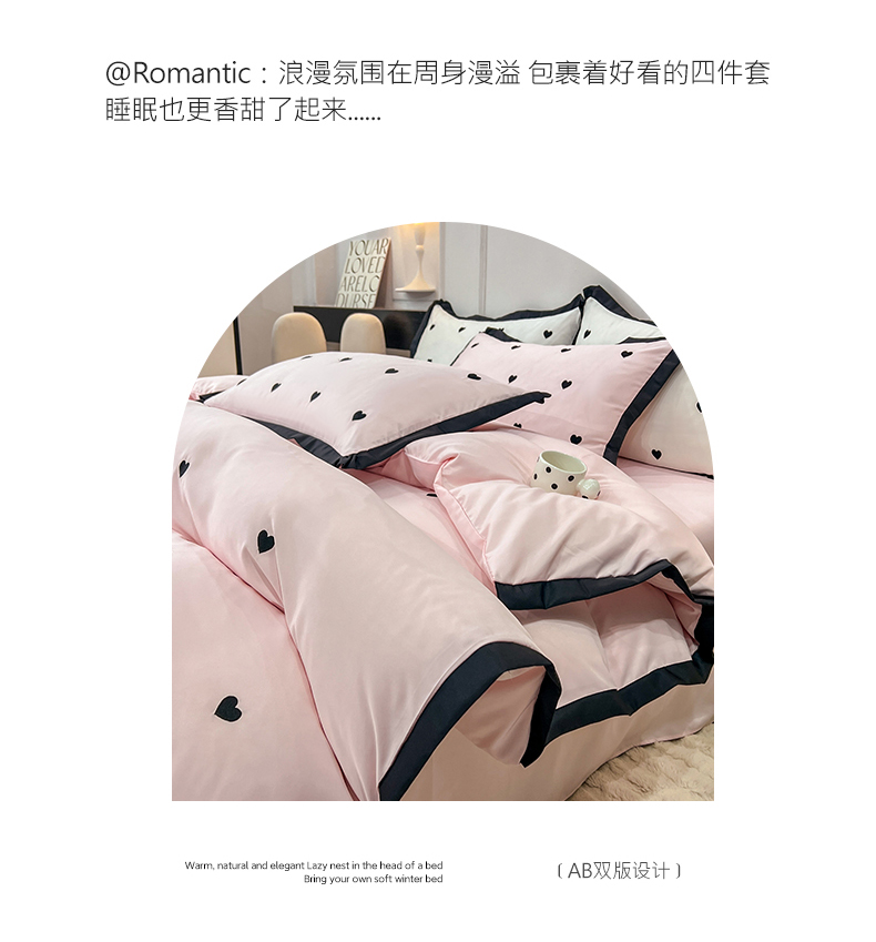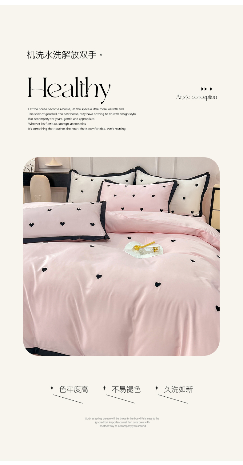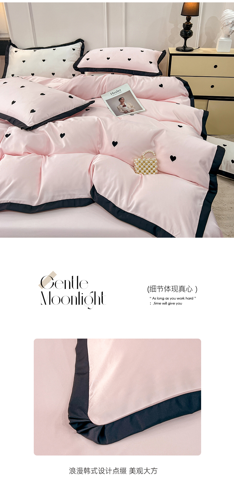 商品名称:艾米家居 2025新款水洗真丝四件套爱心款 黑色爱心款-粉色