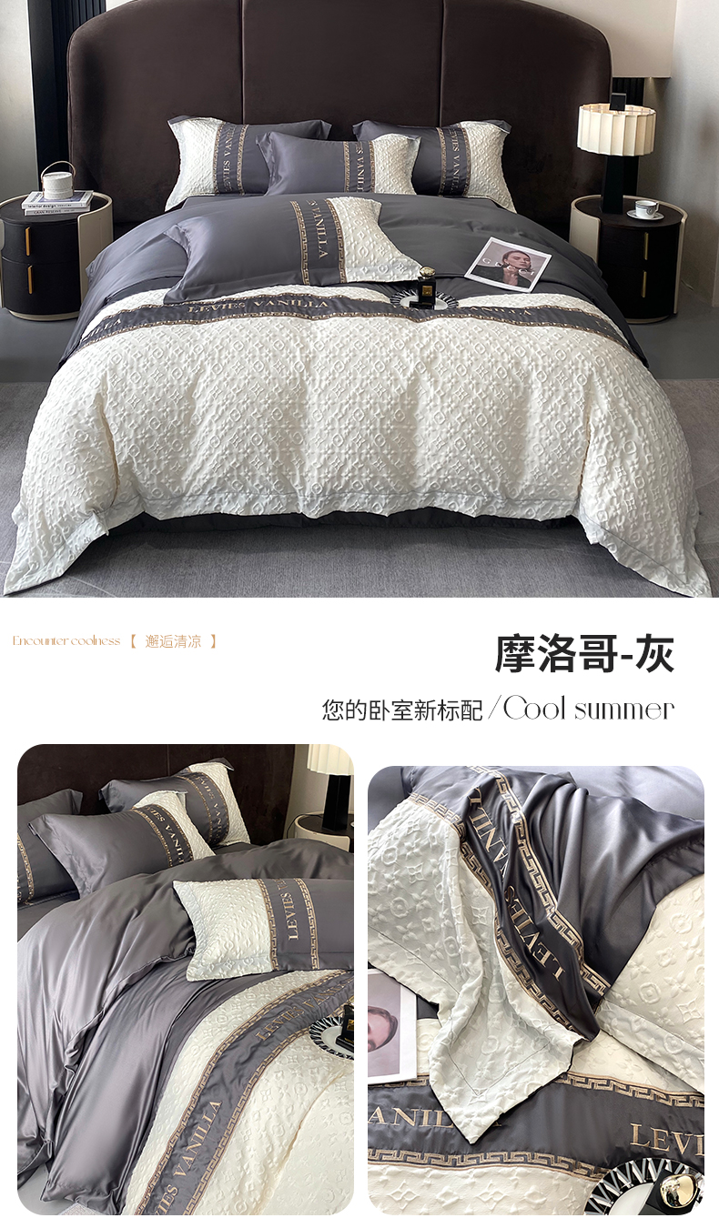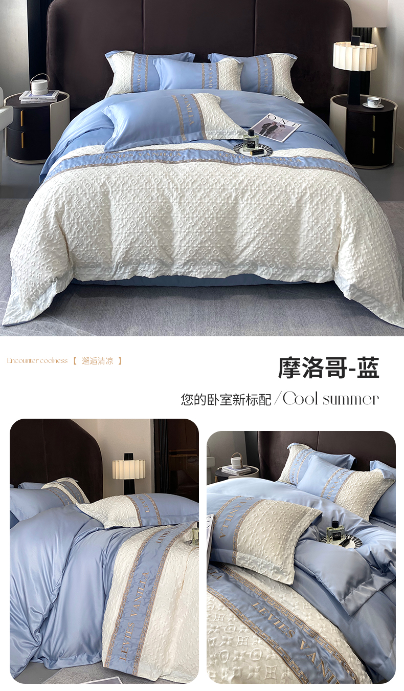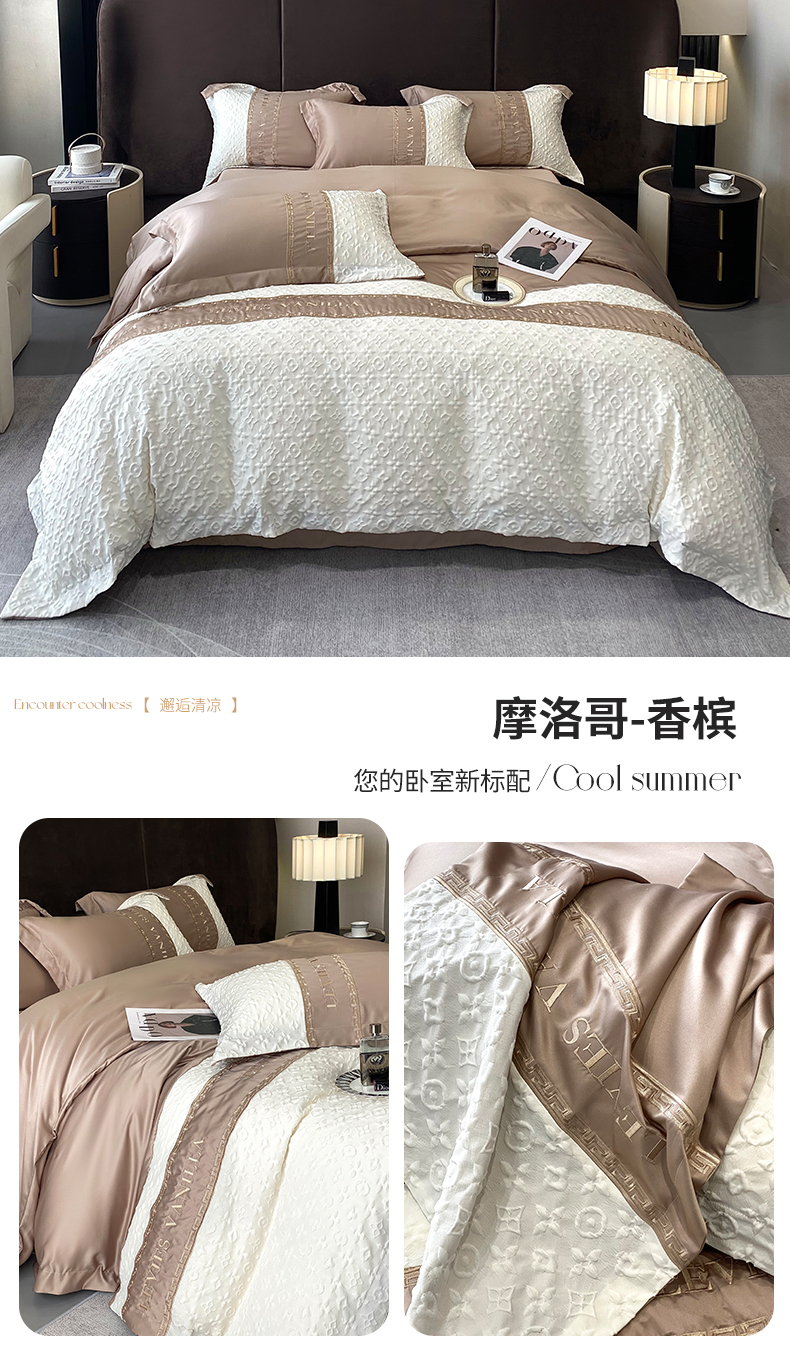 当前位置: 91家纺网 > 商品网购 > 床品套件 > 四件套 > 水洗真丝四件套 > (总)优悦 2024新款时尚轻奢冰丝刺绣四件套-摩洛哥