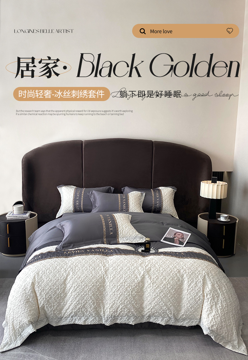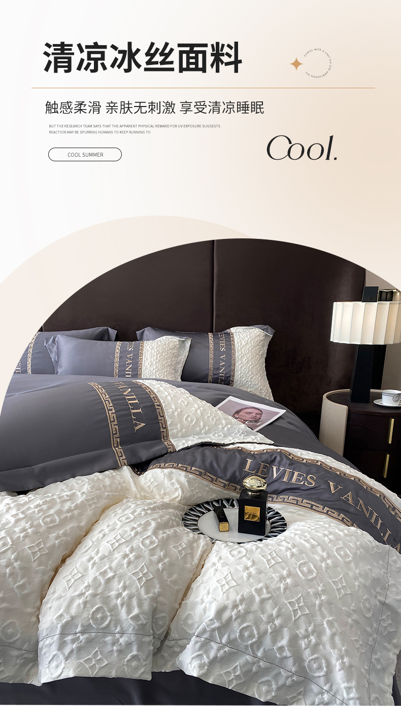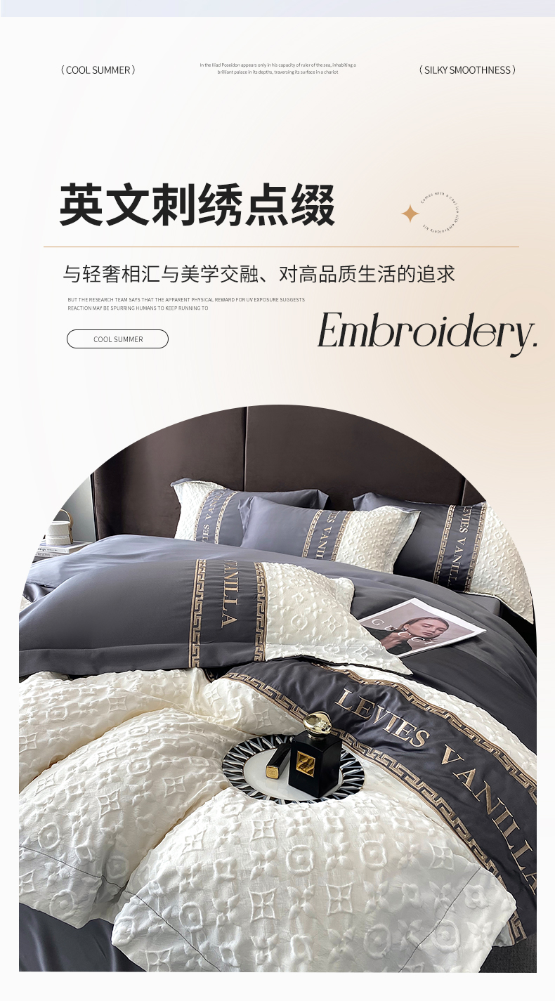 当前位置: 91家纺网 > 商品网购 > 床品套件 > 四件套 > 水洗真丝四件套 > (总)优悦 2024新款时尚轻奢冰丝刺绣四件套-摩洛哥