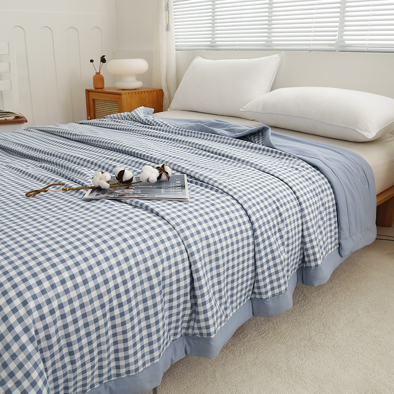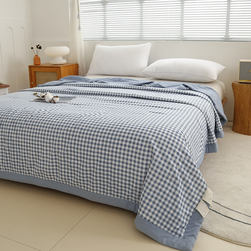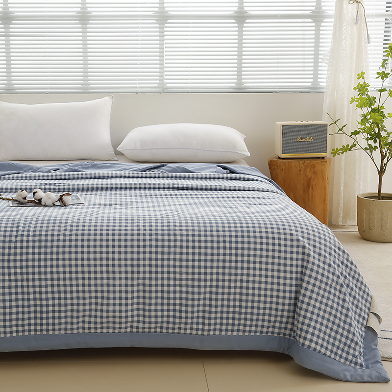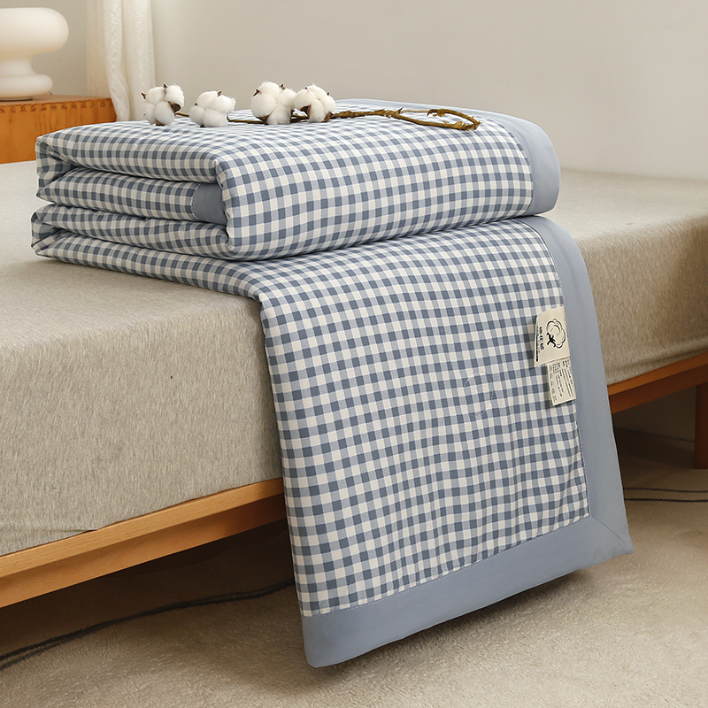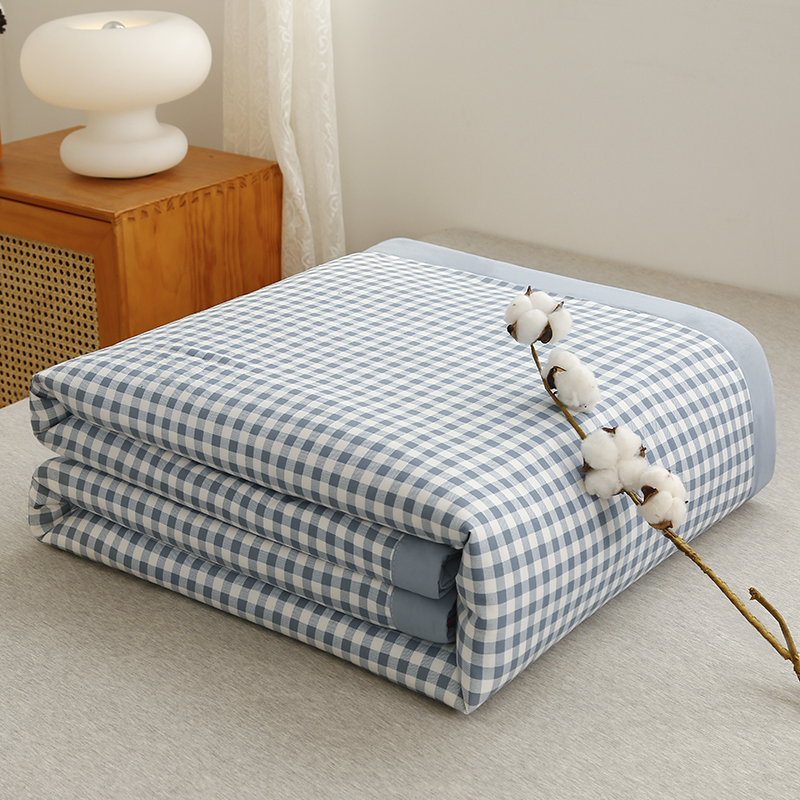 凡客家居 2024新款无印风水洗棉新疆棉花夏被夏凉被空调被 蓝小格