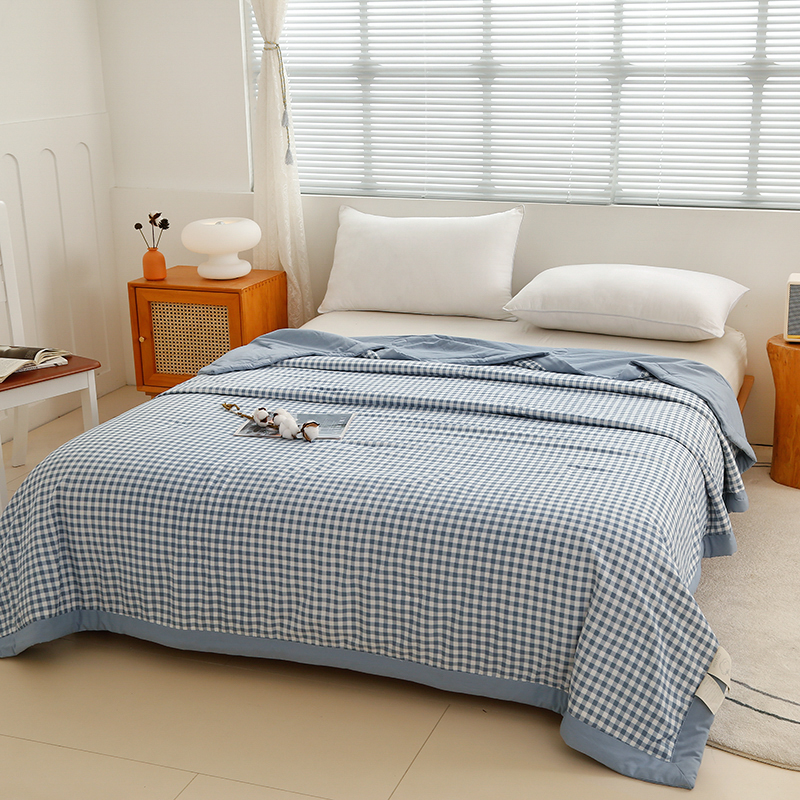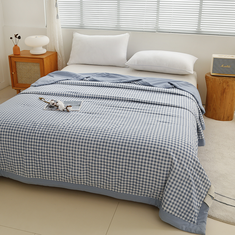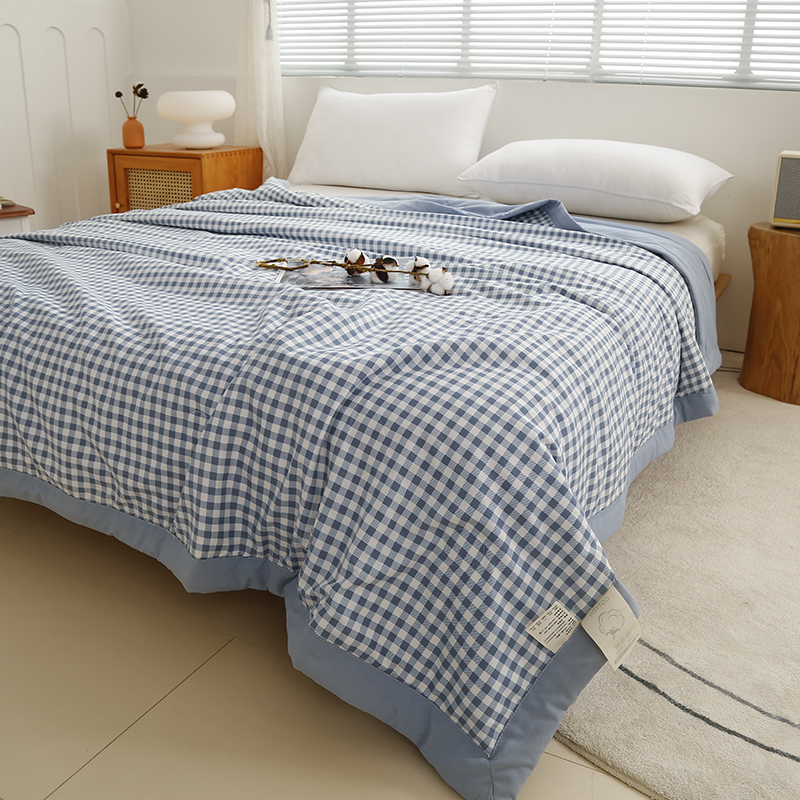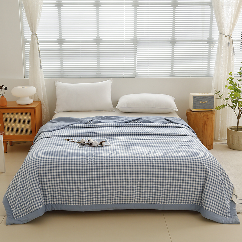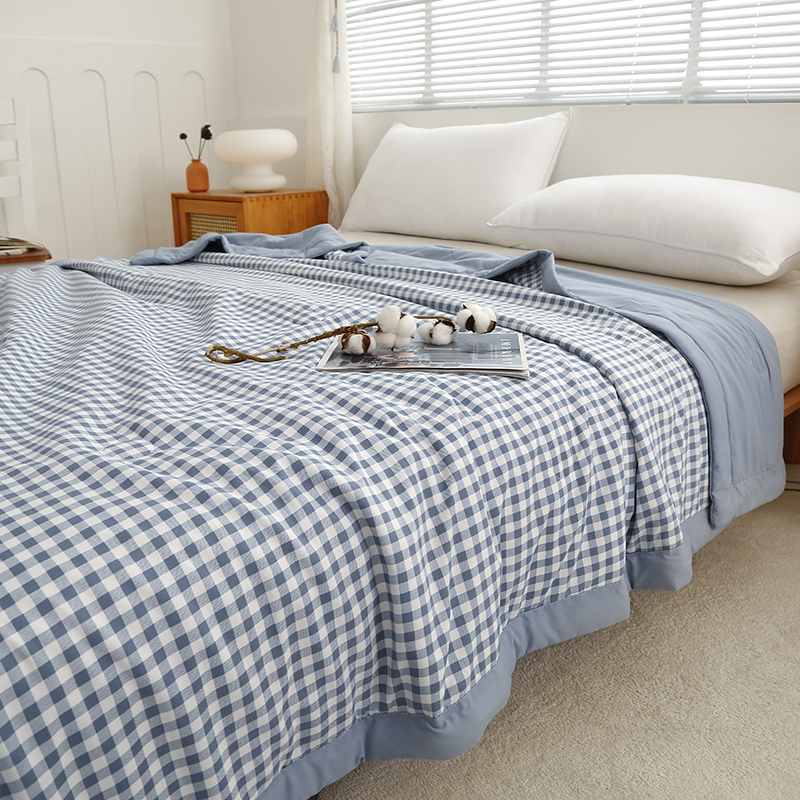 凡客家居 2024新款无印风水洗棉新疆棉花夏被夏凉被空调被 蓝小格