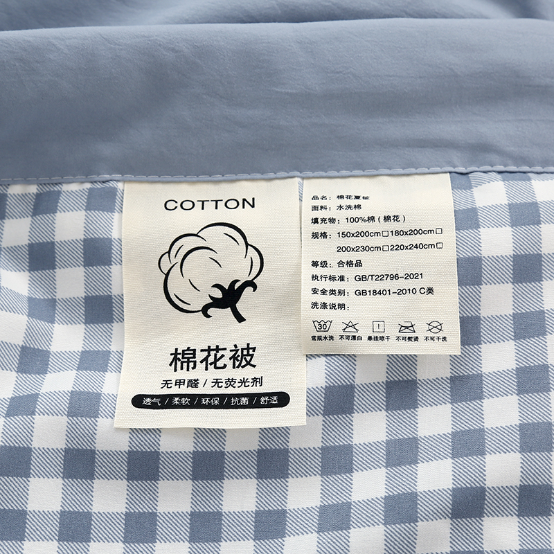 商品名称:凡客家居 2024新款无印风水洗棉新疆棉花夏被夏凉被空调被 蓝小格