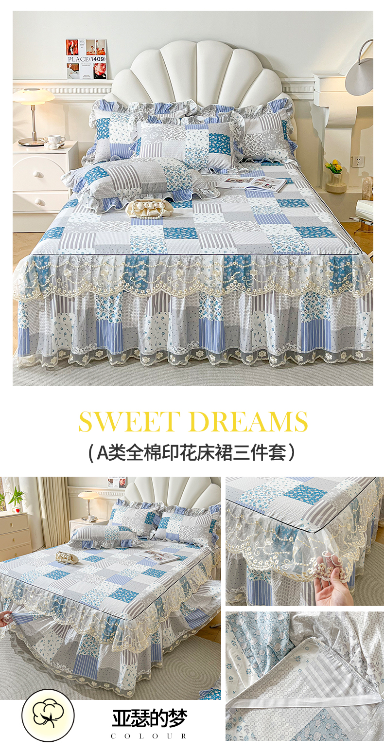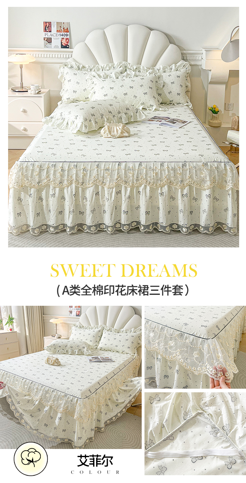 宜凡家纺 2024新款全棉印花单层床裙系列三件套 童梦爱丽丝