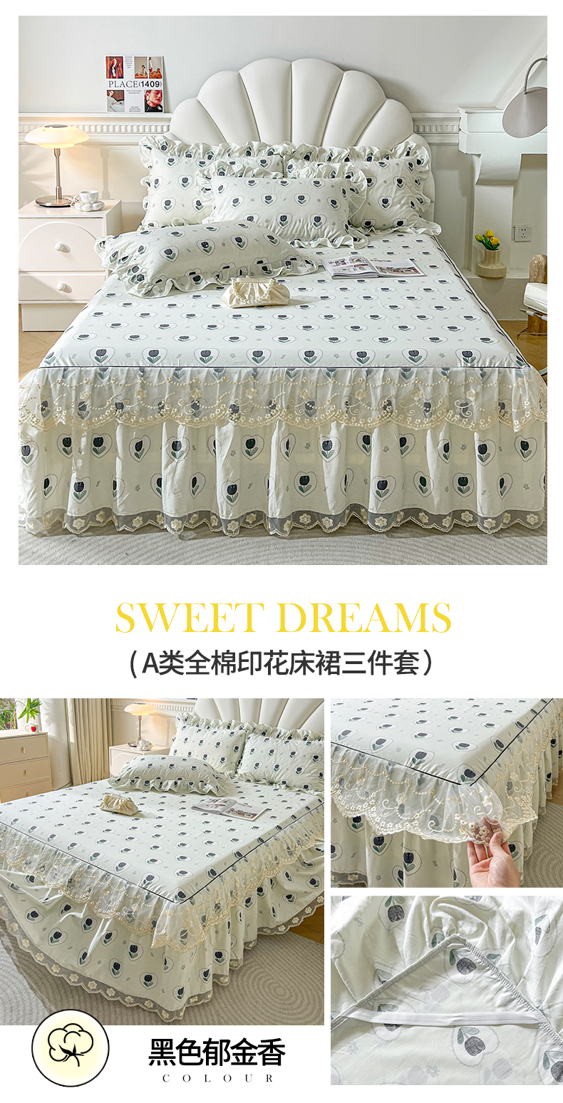 • 91家纺网 家纺一手货源 找家纺 宜凡家纺 2024新款全棉印花单层床裙系列三件套 童梦爱丽丝