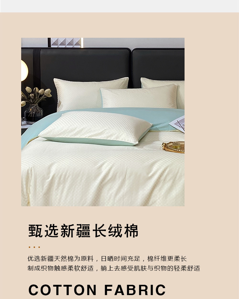 金鑫汇 2024新款提花小方格全棉套件单品系列-单枕套 奶昔白+水绿
