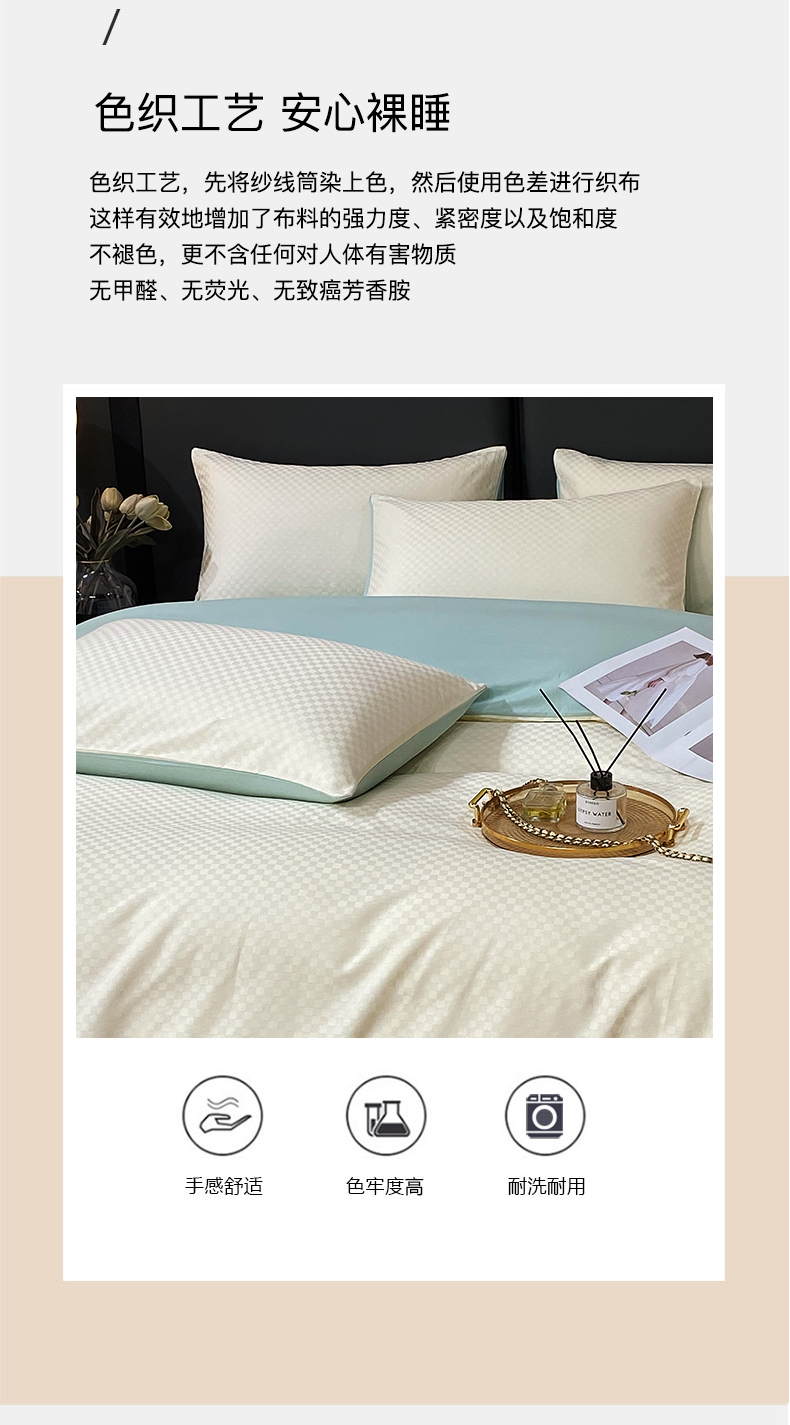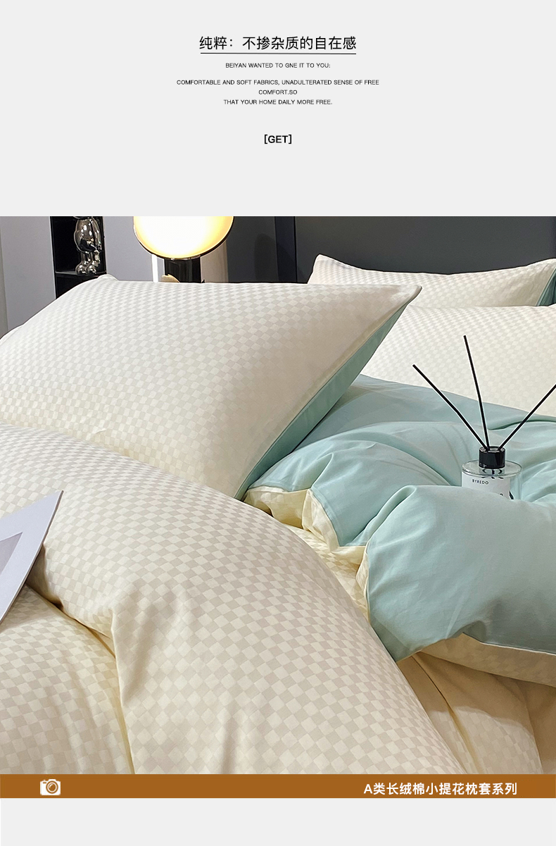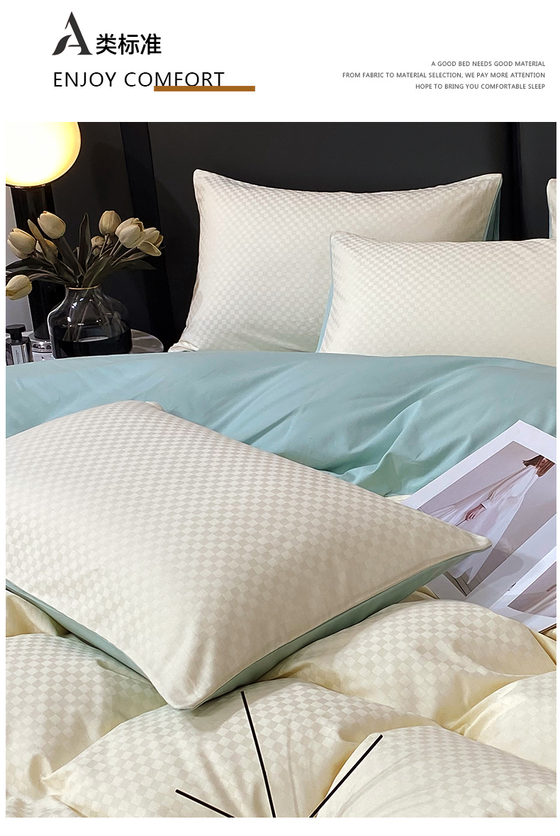 商品名称:金鑫汇 2024新款提花小方格全棉套件单品系列-单枕套 奶昔白+水绿