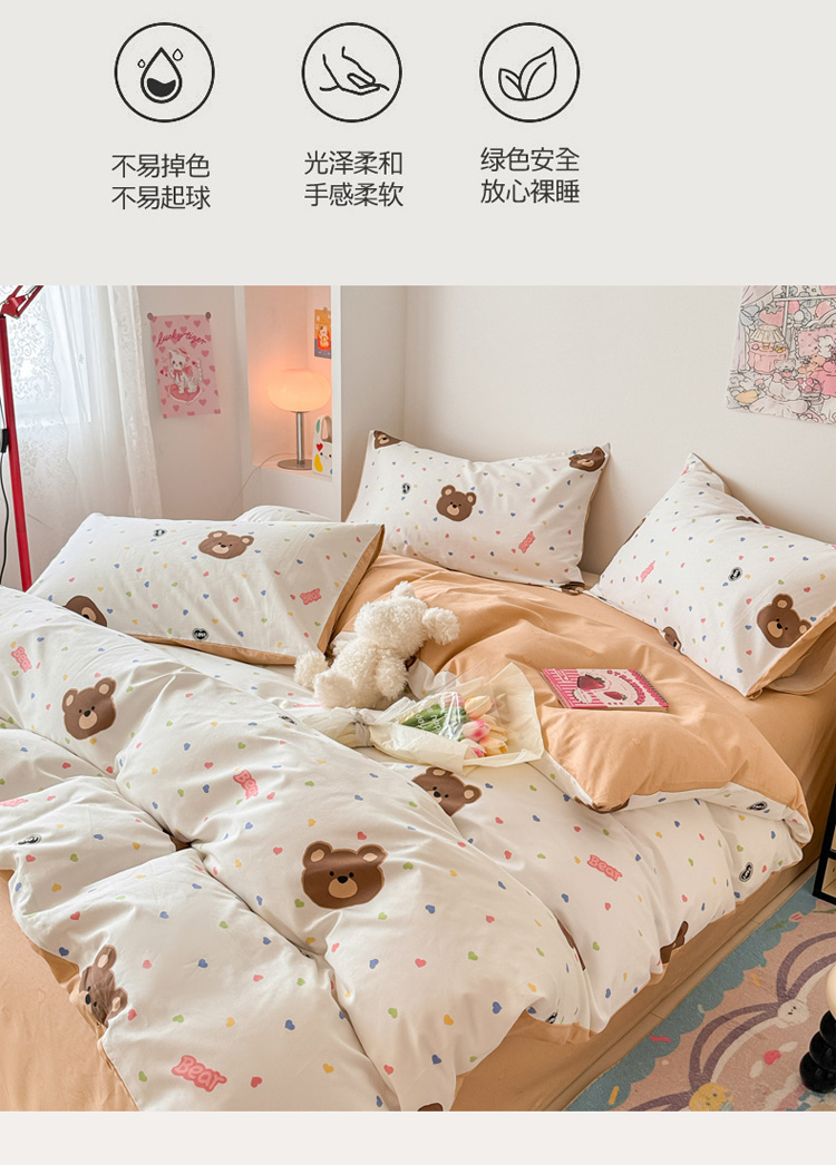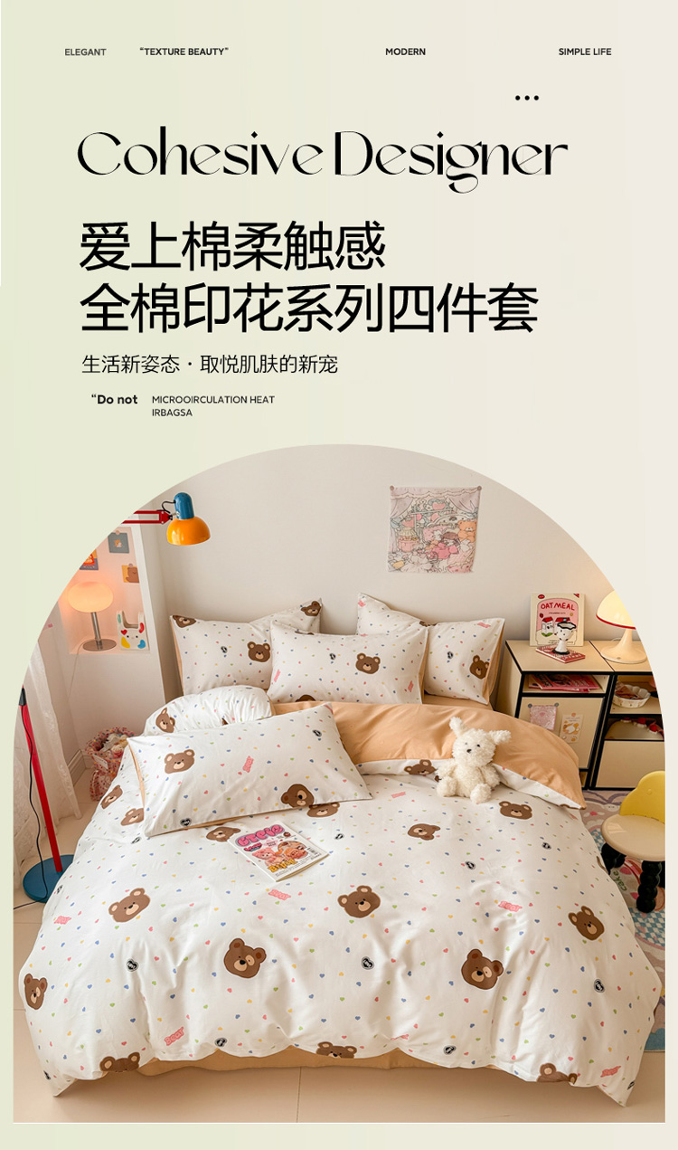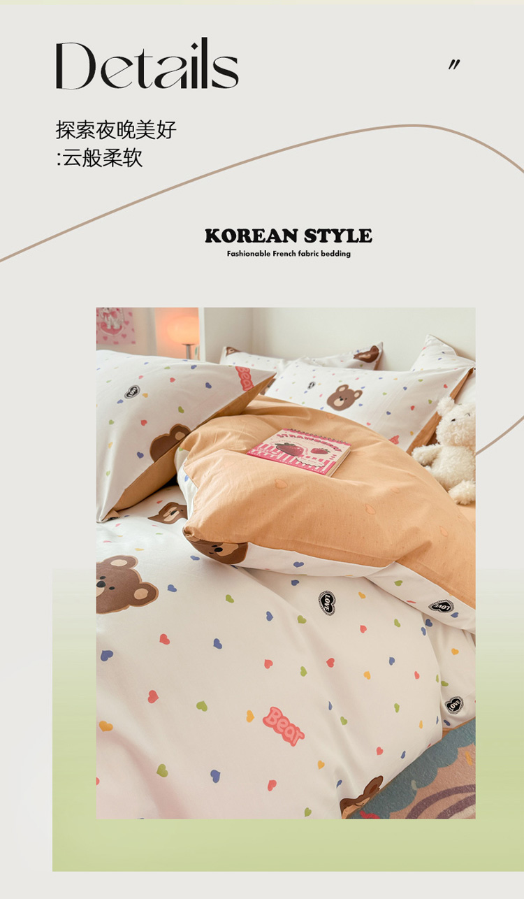 • 91家纺网 家纺一手货源 找家纺 慕尚 2025新款13070全棉小清新四件套 哆咪熊