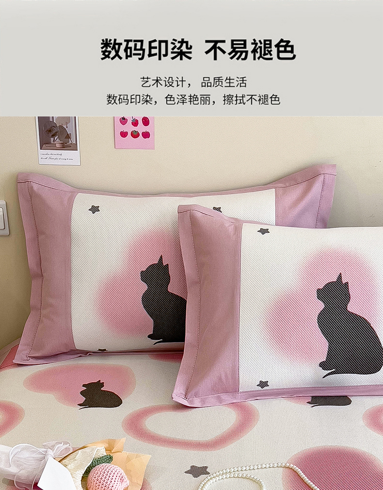 商品名称:全季家居 2024新款A类数码印花枕套 魅粉小猫