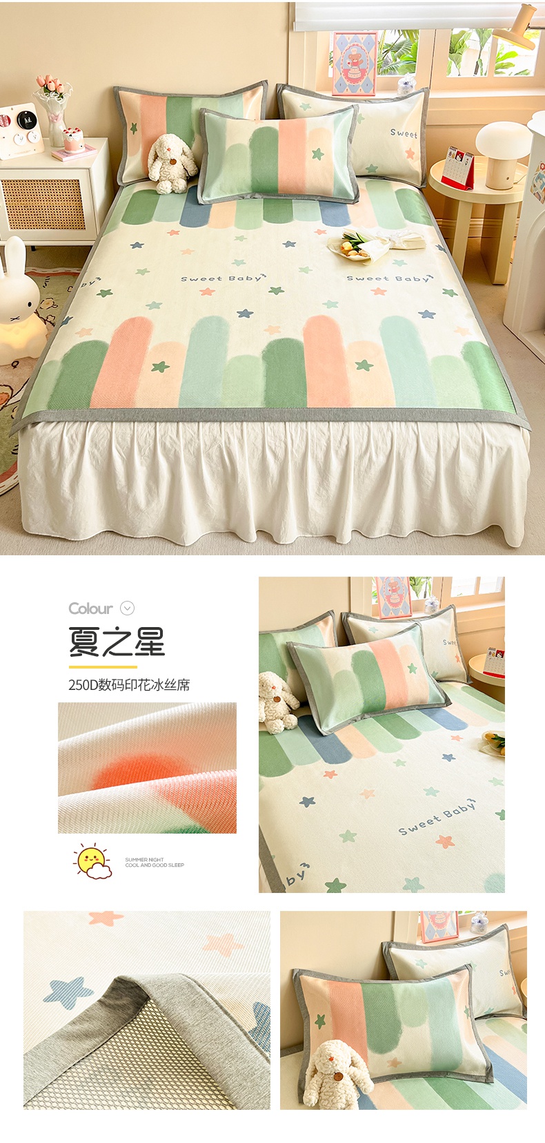 (总)懒猫家纺 2022新款学生宿舍冰丝数码印花凉席,尔雅,粉小兔,花韵,萝卜兔,清晨,手绘爱心,探索星球,甜心,小鲸鱼,小熊仔,元气兔