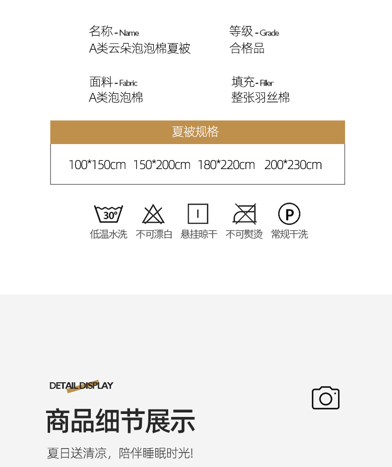 • 适用季节: 空调被/夏凉被