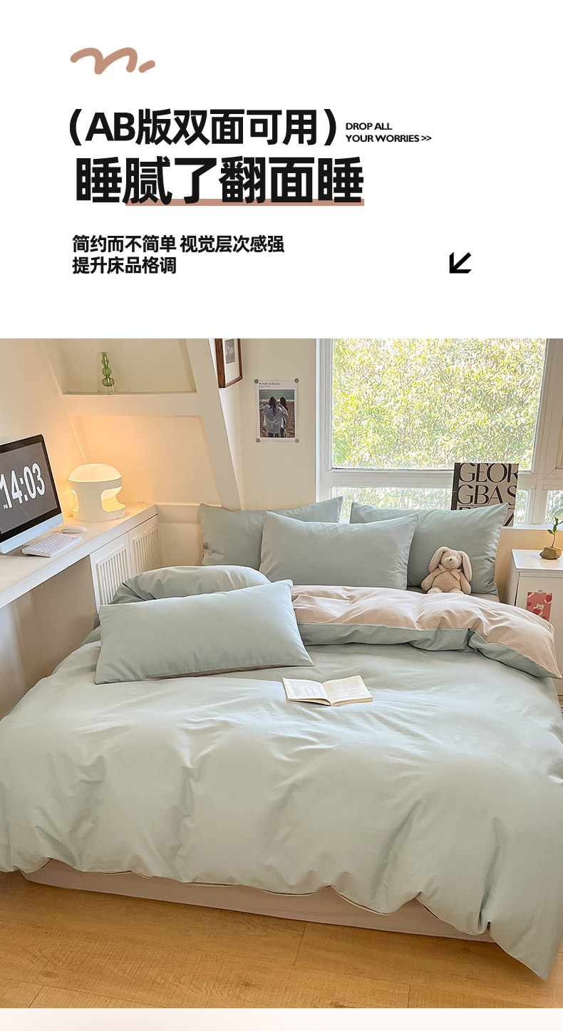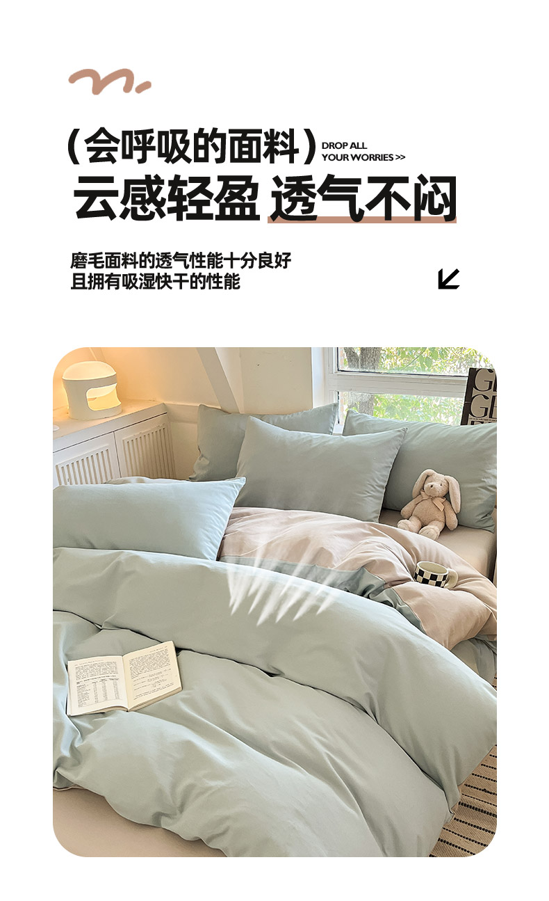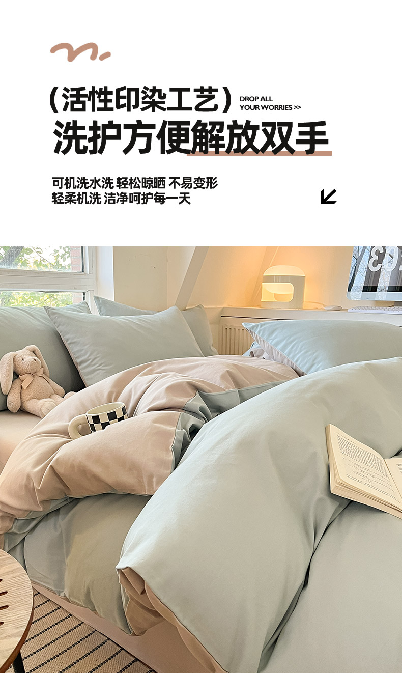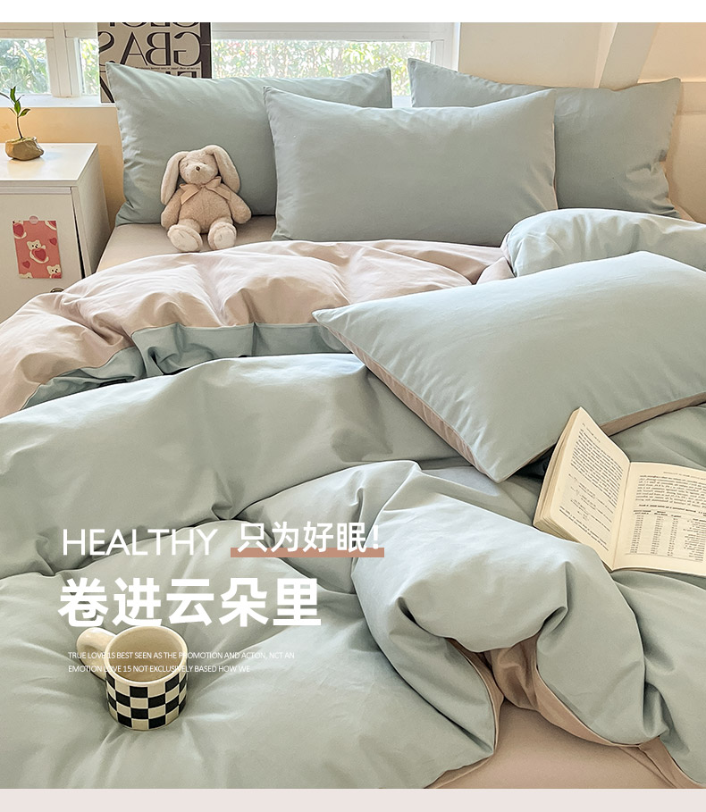 当前位置: 91家纺网 > 商品网购 > 床品套件 > 四件套 > 磨毛活性四件套 > 米粒 2024新款纯色简约双拼磨毛四件套 天蓝+大麦灰