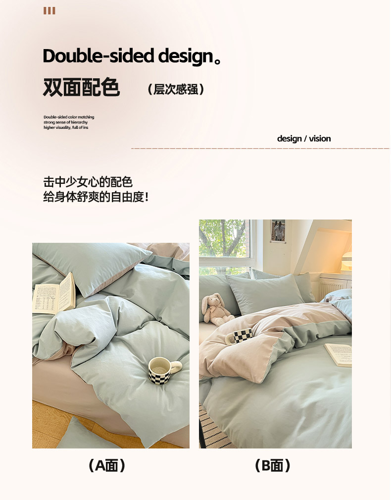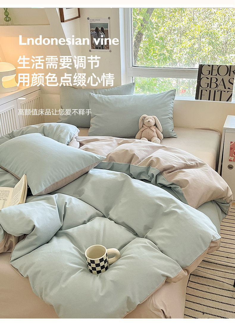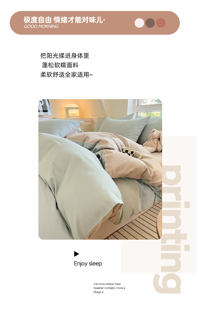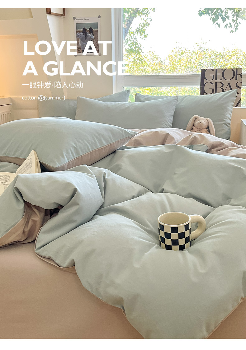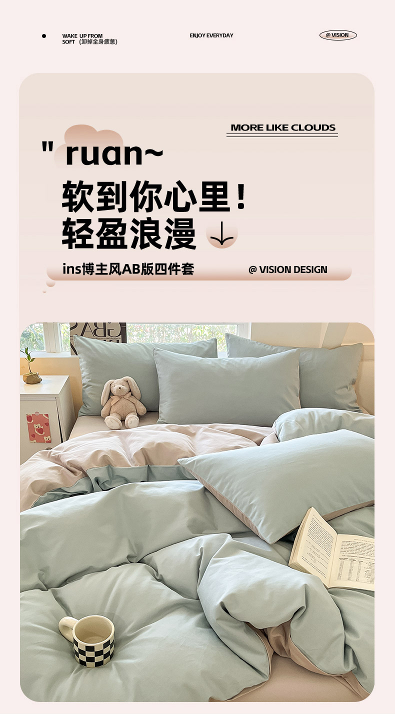 当前位置: 91家纺网 > 商品网购 > 床品套件 > 四件套 > 磨毛活性四件套 > 米粒 2024新款纯色简约双拼磨毛四件套 天蓝+大麦灰