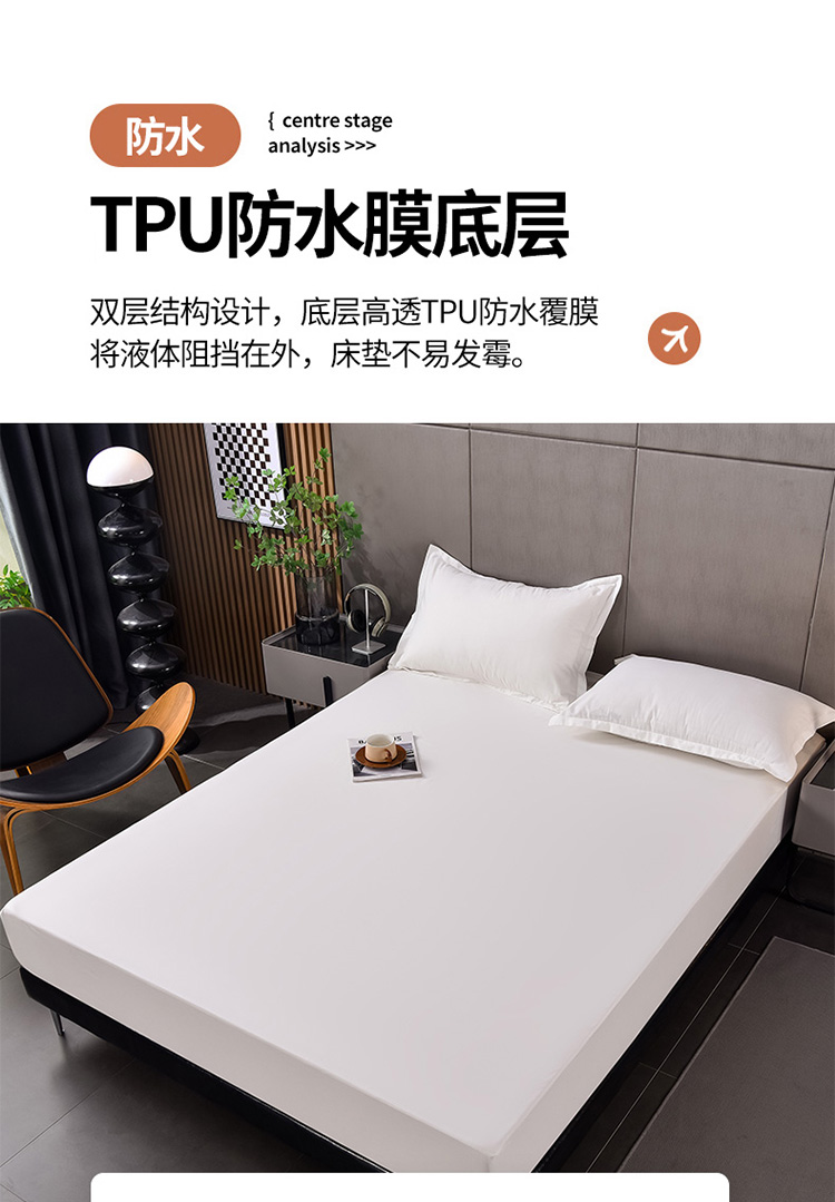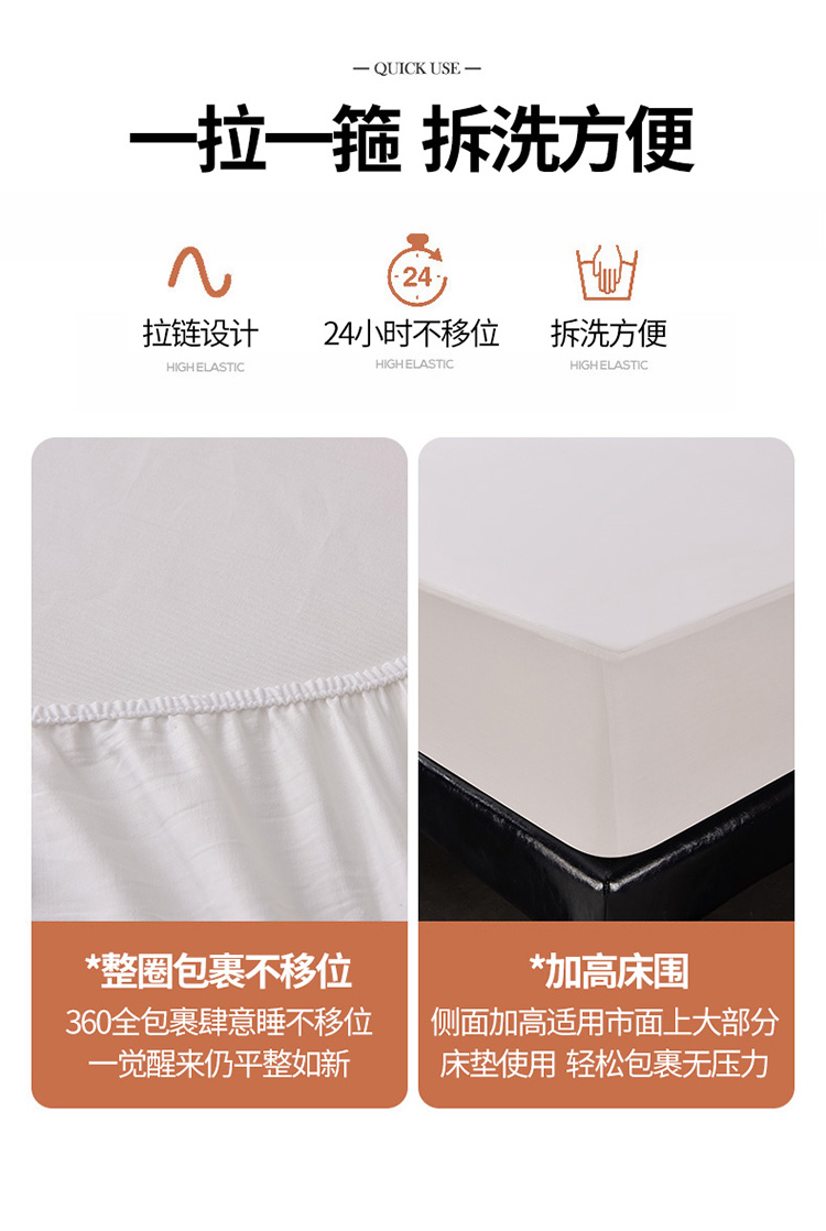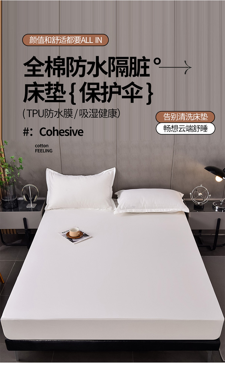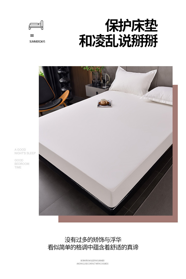 床笠人家 2025新款全棉纯色防水床笠防水隔尿透气-纯色防水床笠 白色